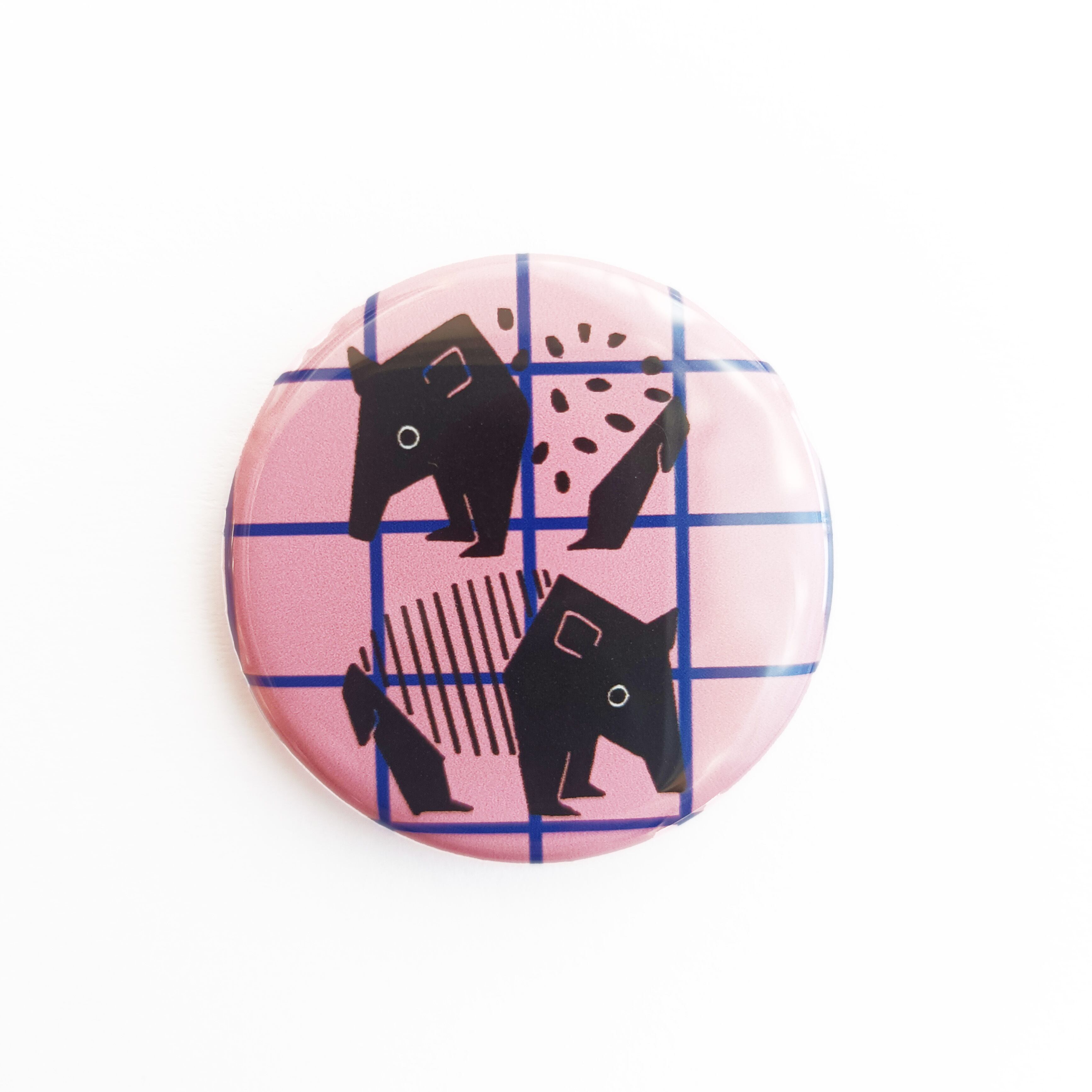 夢見るバクの缶バッジ(ピンク 格子柄)