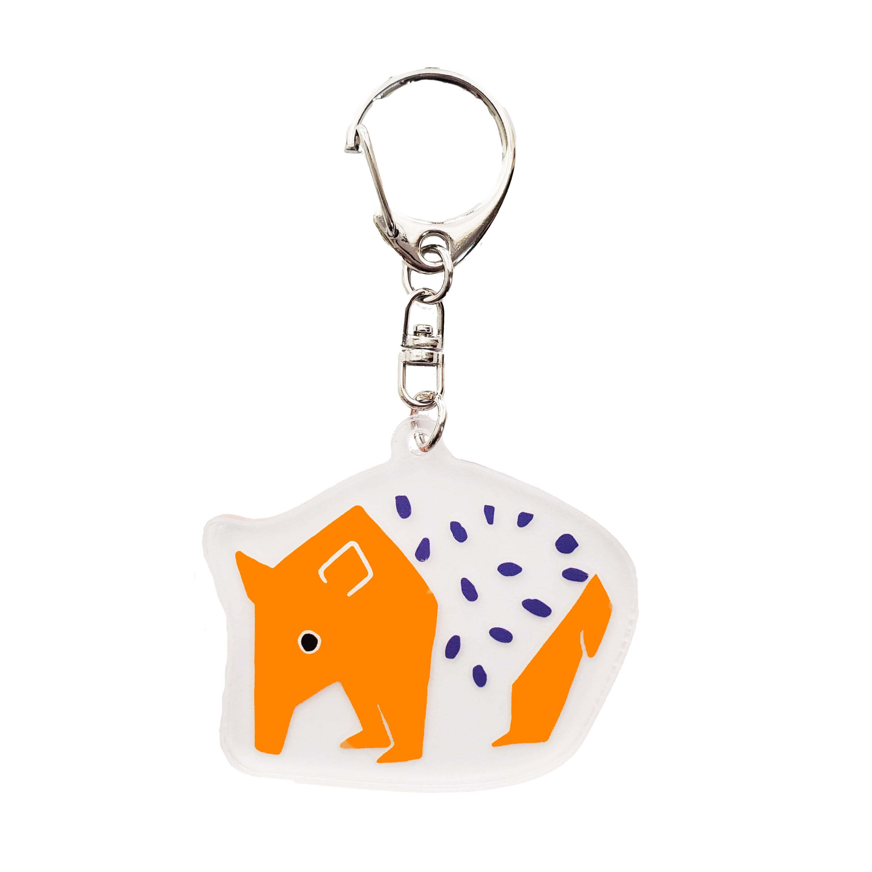 夢見るバク アクリルキーホルダー(オレンジ×紫水玉)