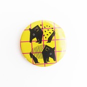 夢見るバクの缶バッジ(イエロー 格子柄)です。