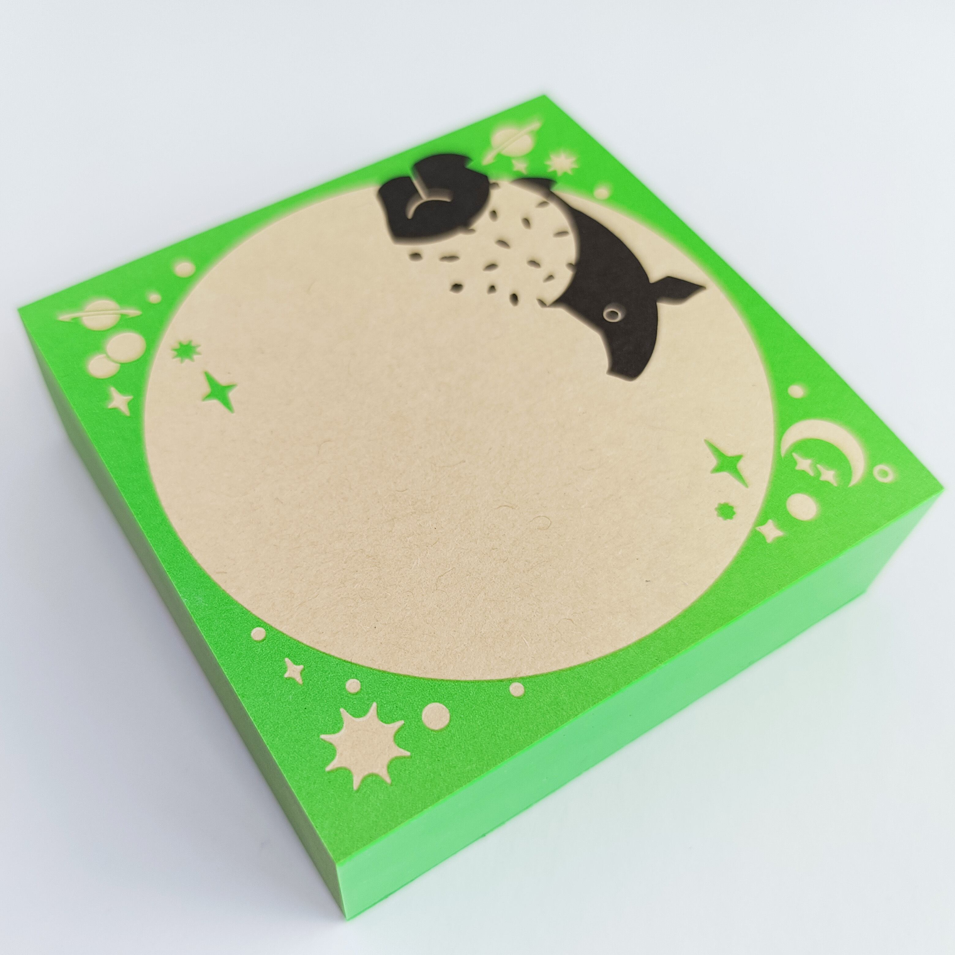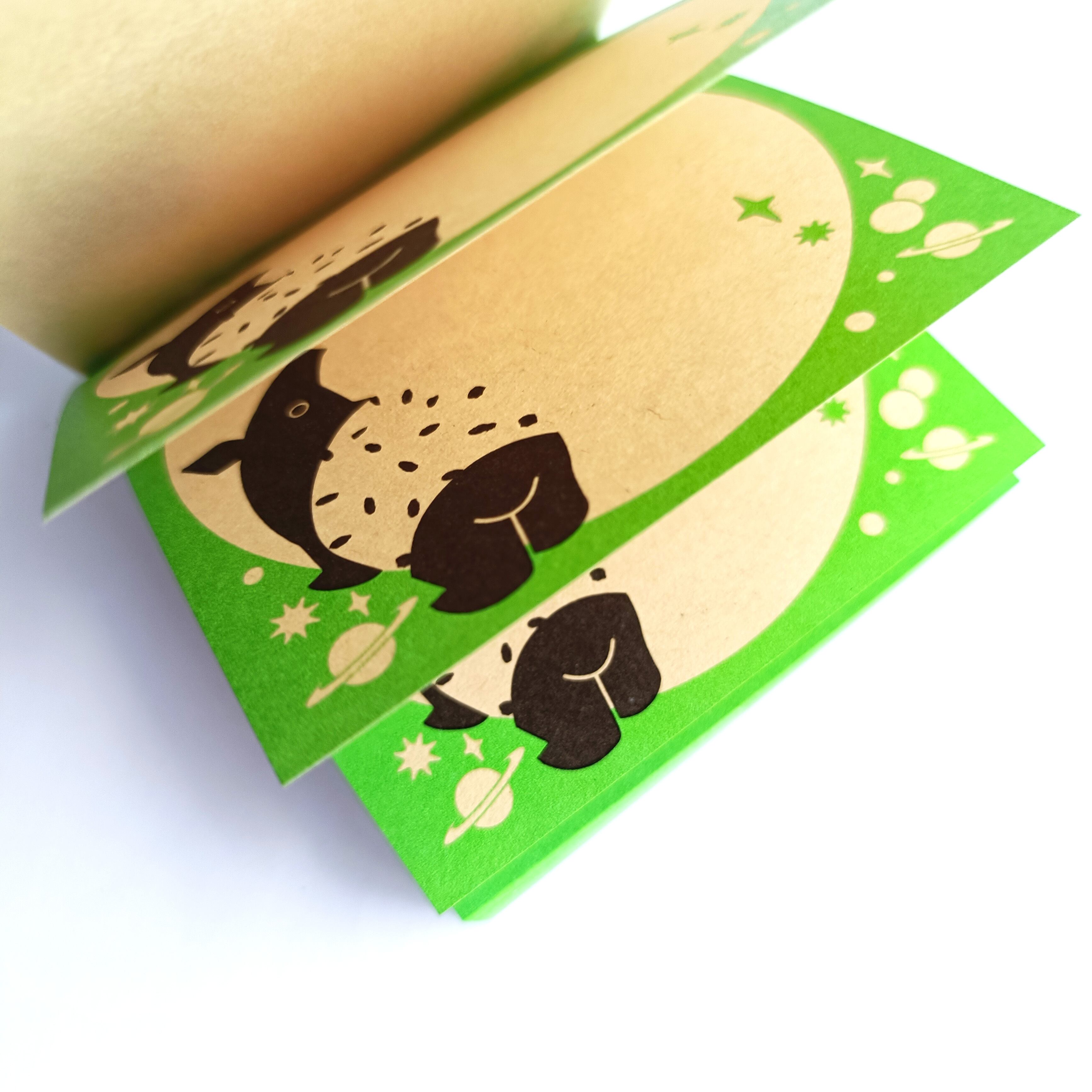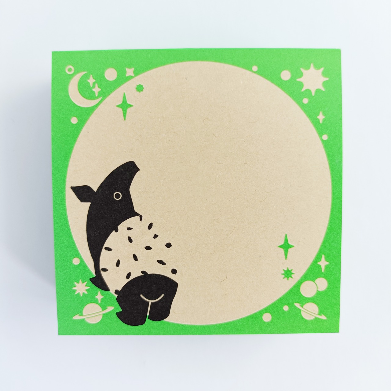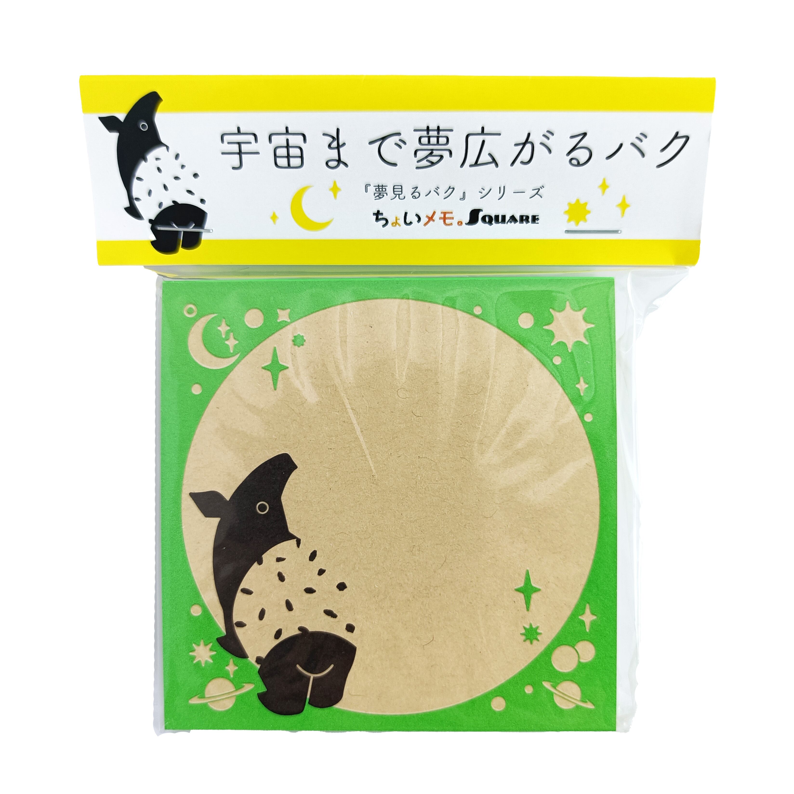 「ちょいメモ。SQUARE」宇宙まで夢広がるバク・グリーン・オリンパス(紙色:ベージュ)