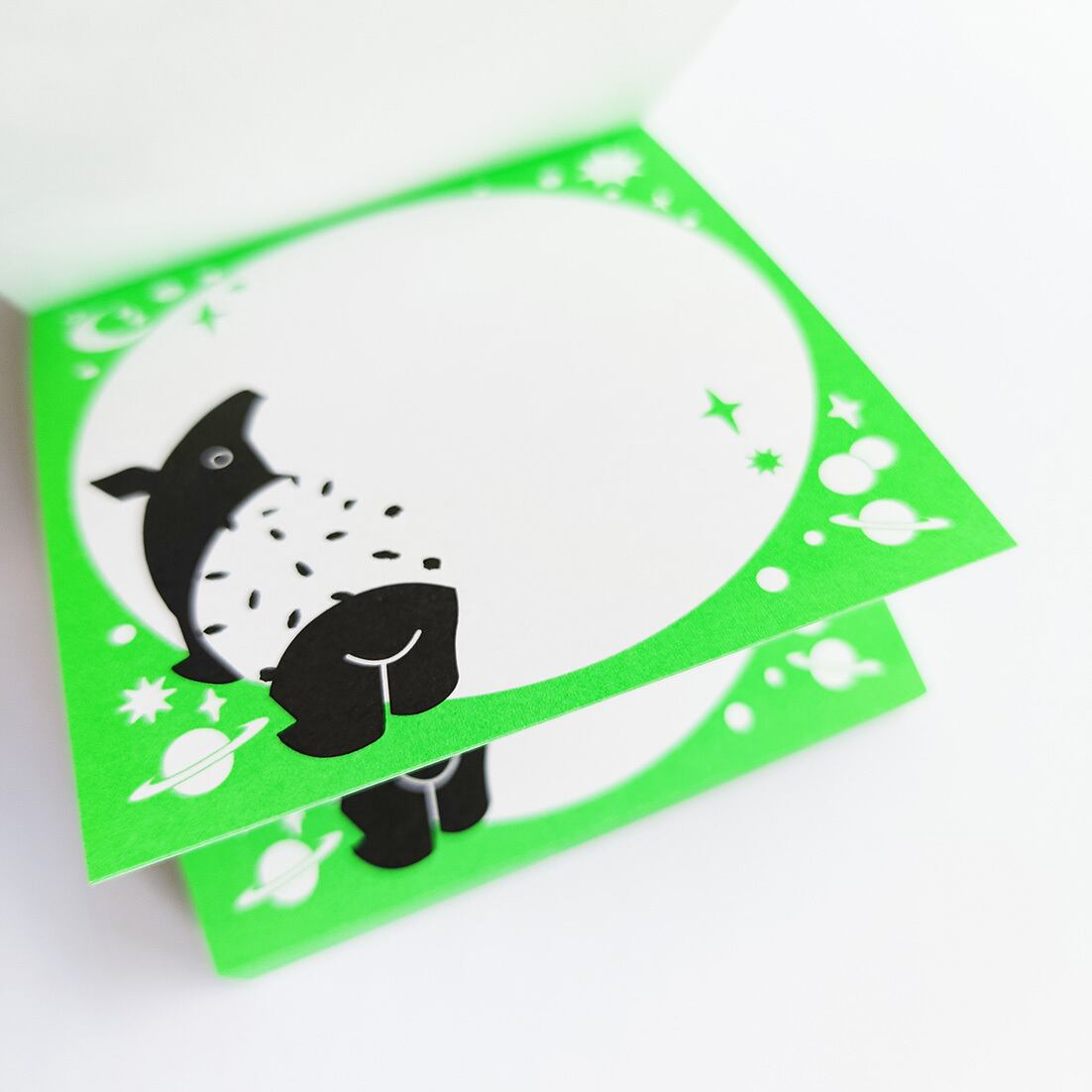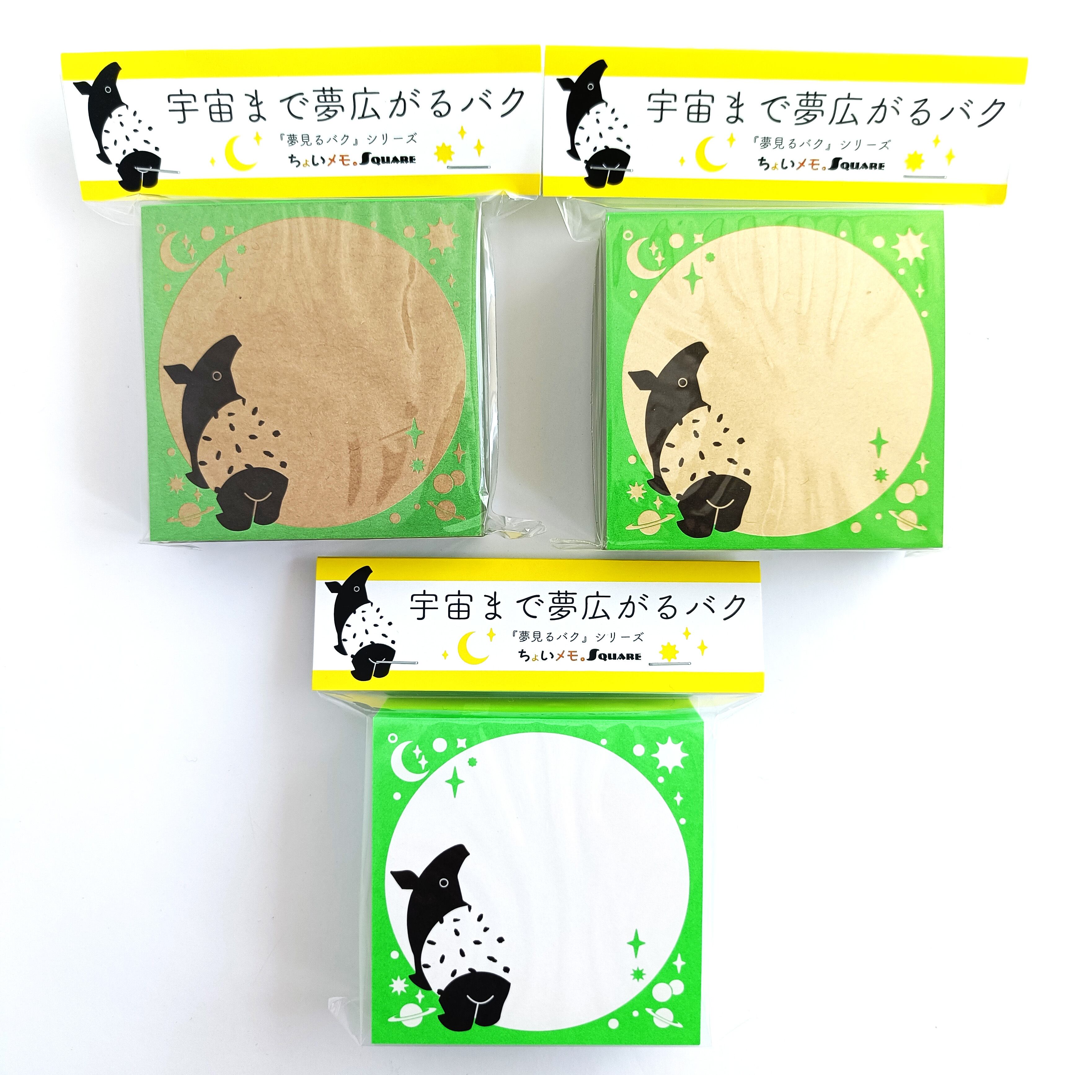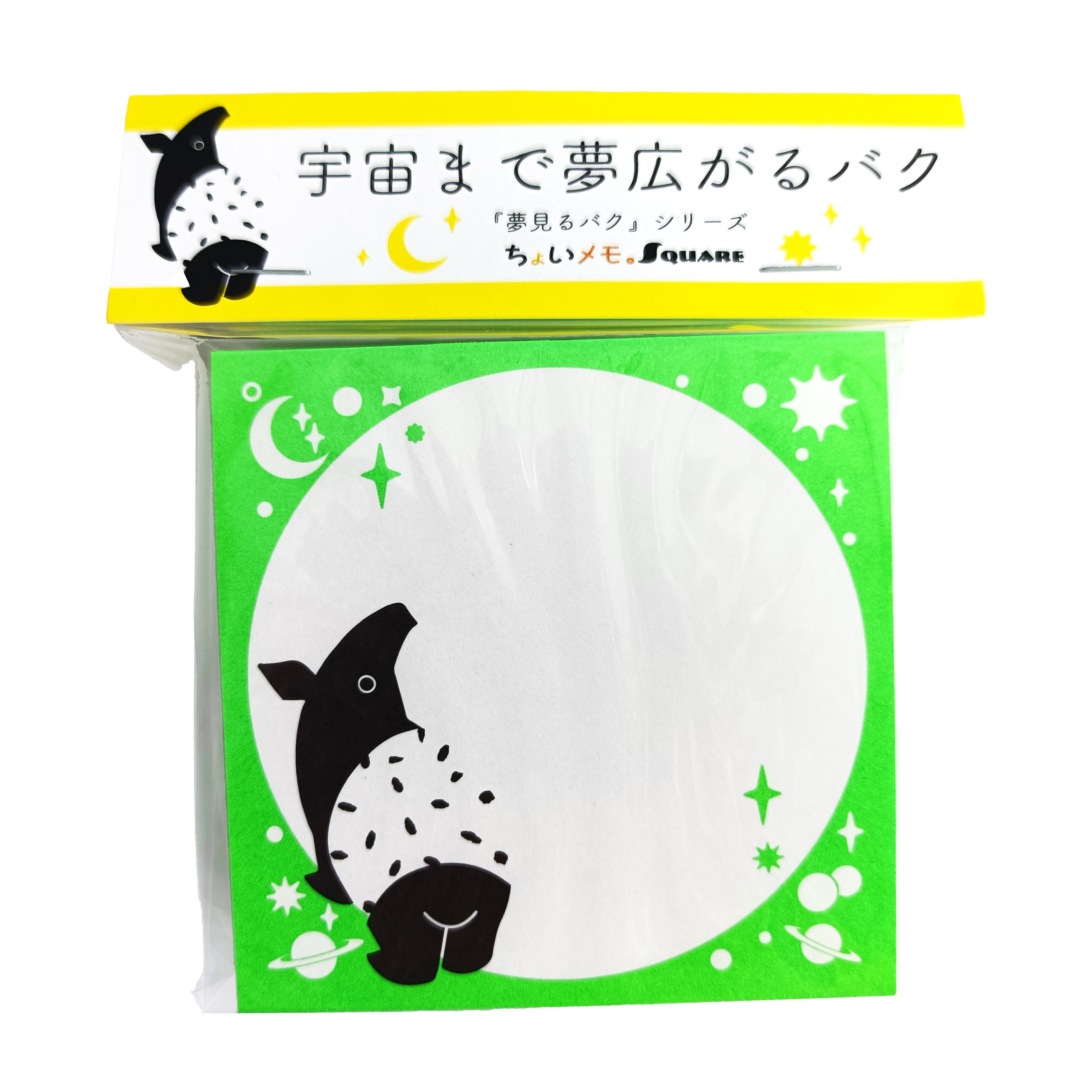 「ちょいメモ。SQUARE」宇宙まで夢広がるバク・グリーン・上質紙(紙色:白色)