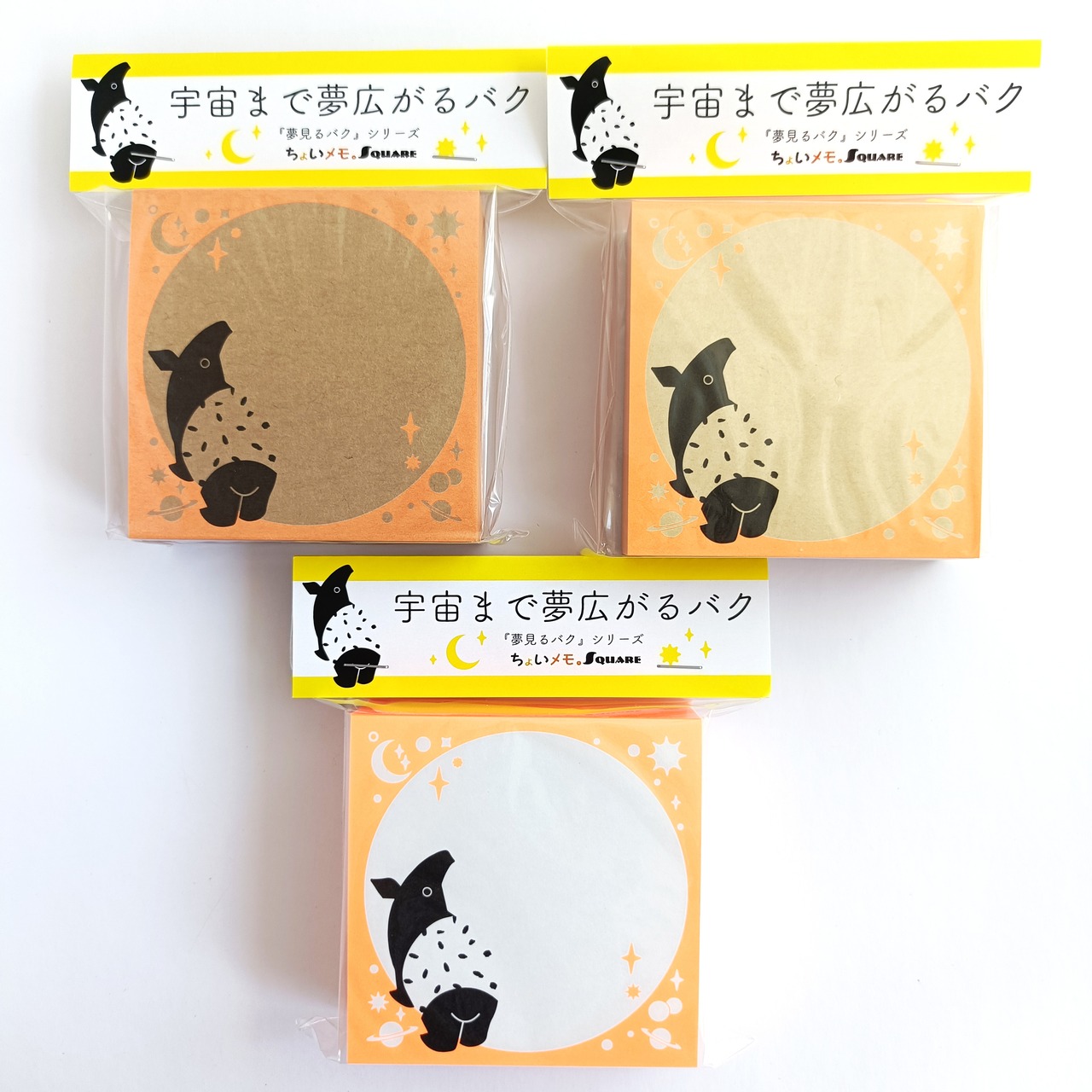 「ちょいメモ。SQUARE」宇宙まで夢広がるバク・オレンジ・両更クラフト紙(紙色:茶)