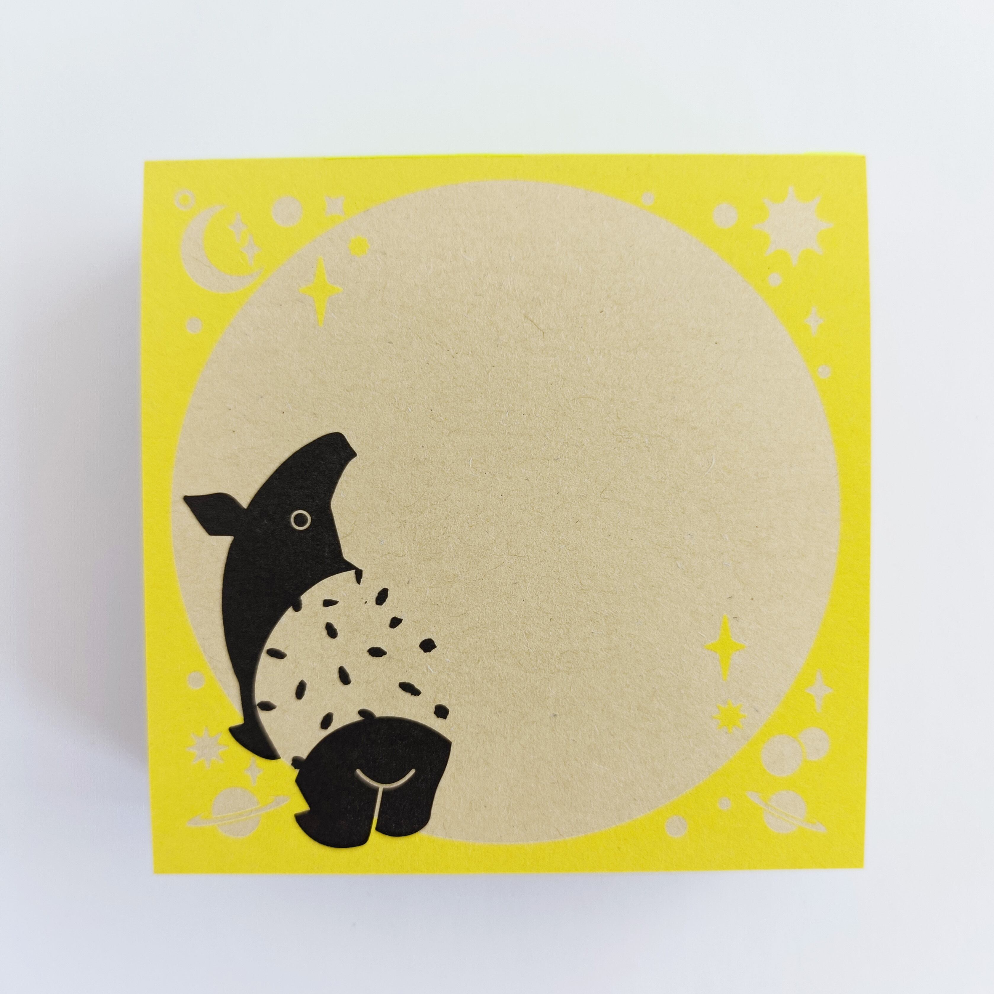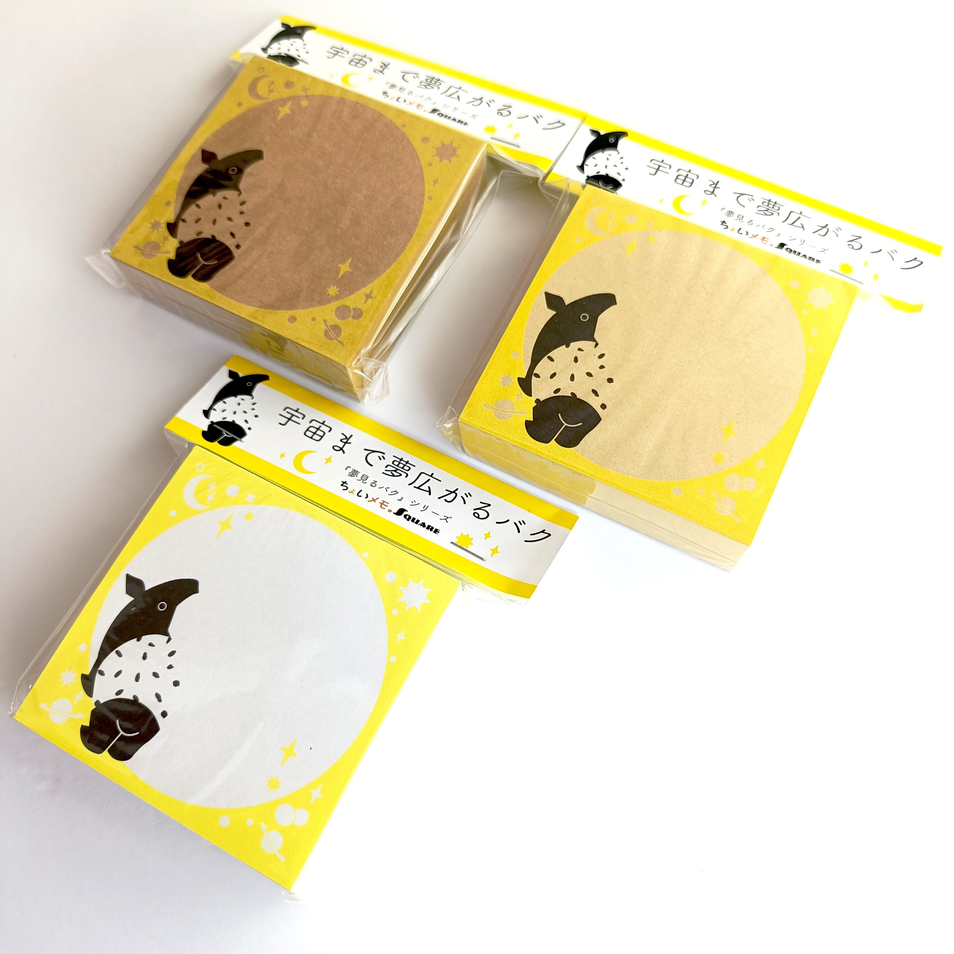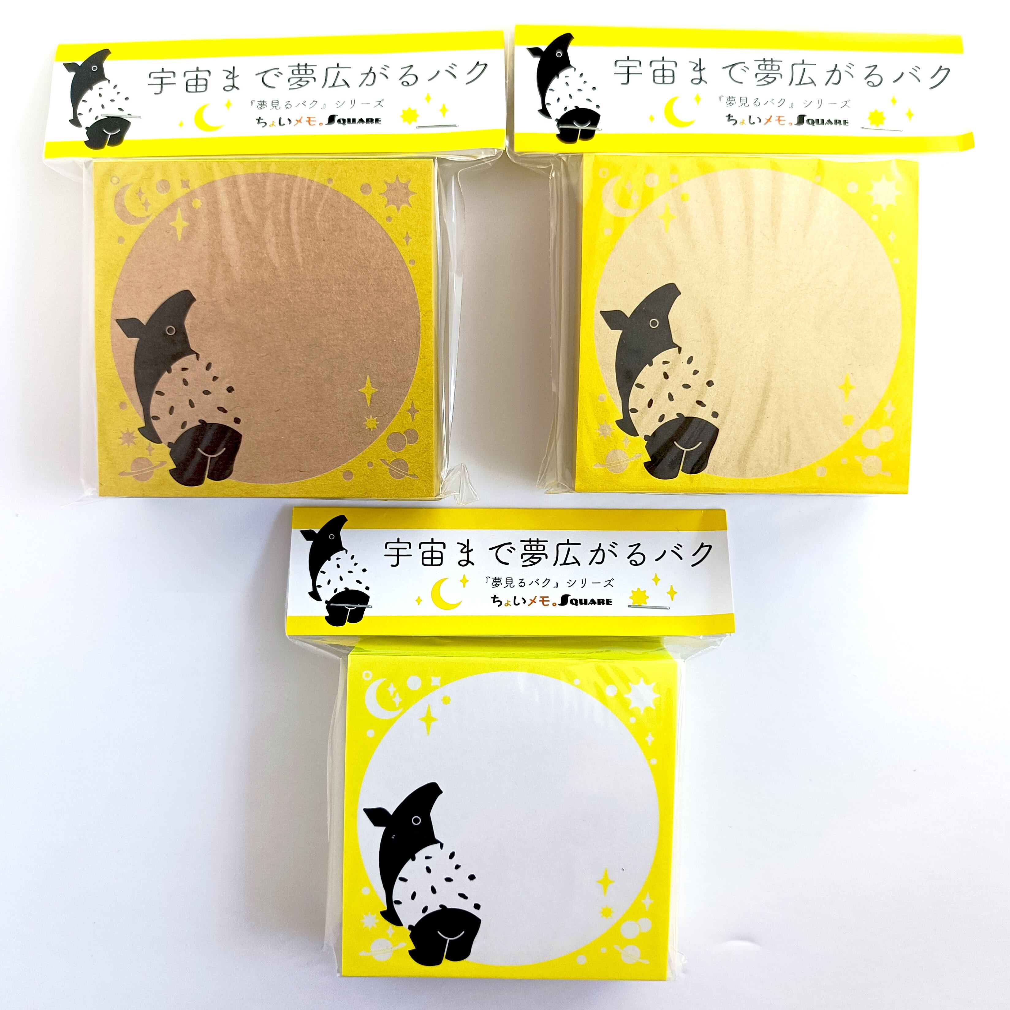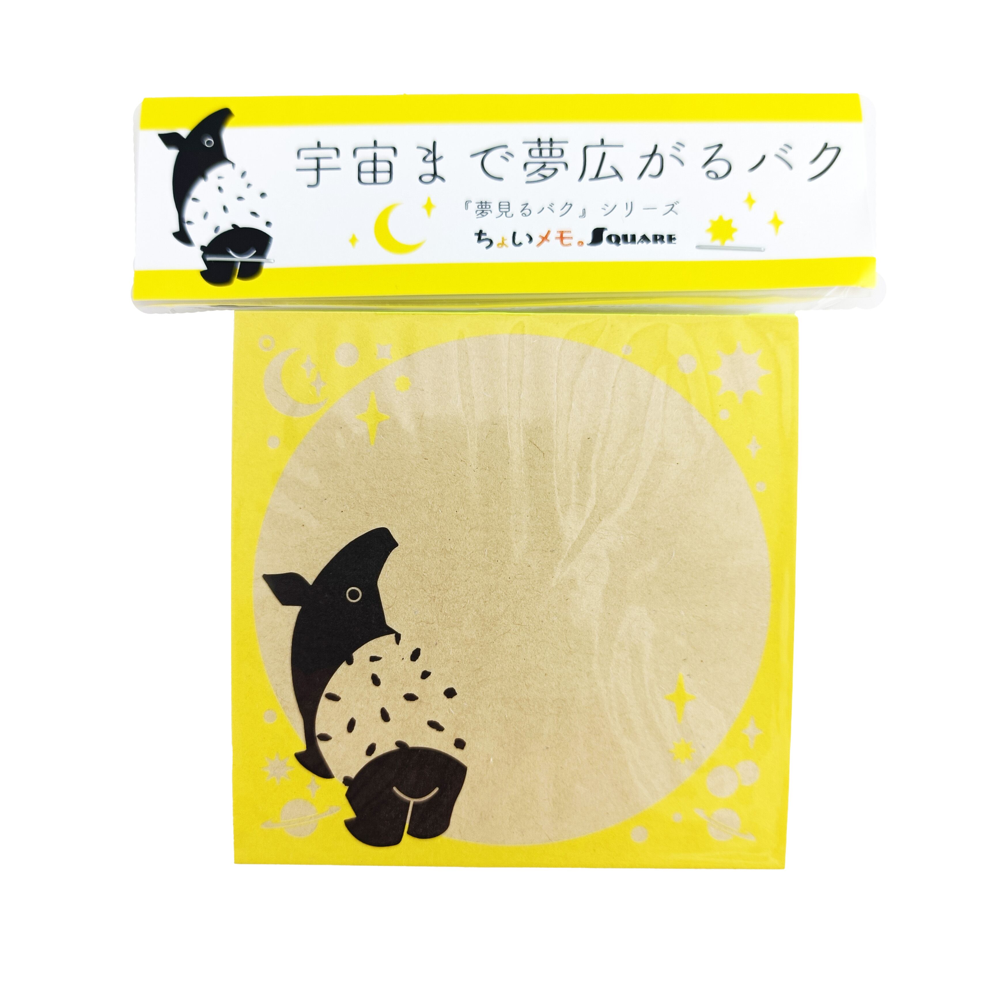 「ちょいメモ。SQUARE」宇宙まで夢広がるバク・イエロー・オリンパス(紙色:ベージュ)