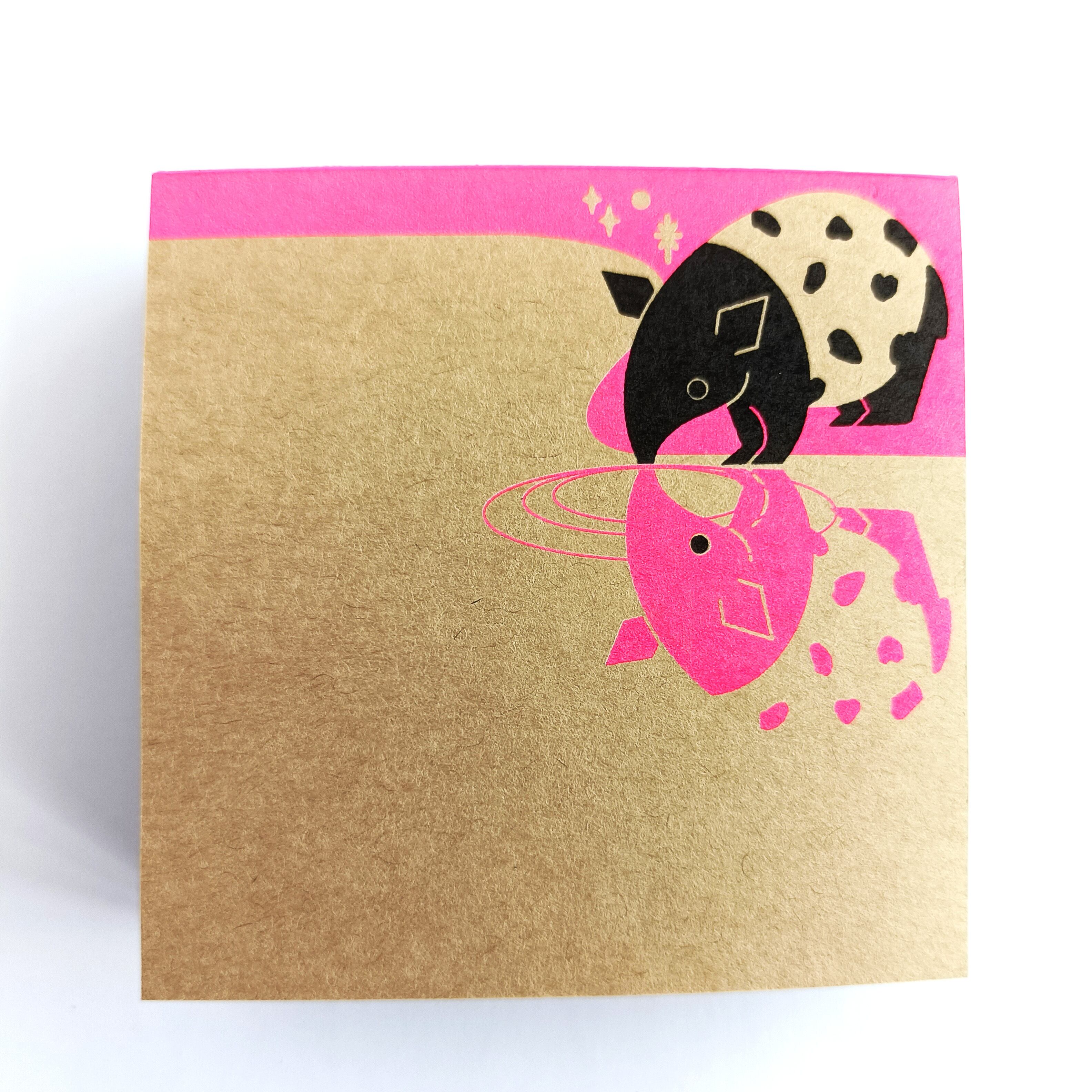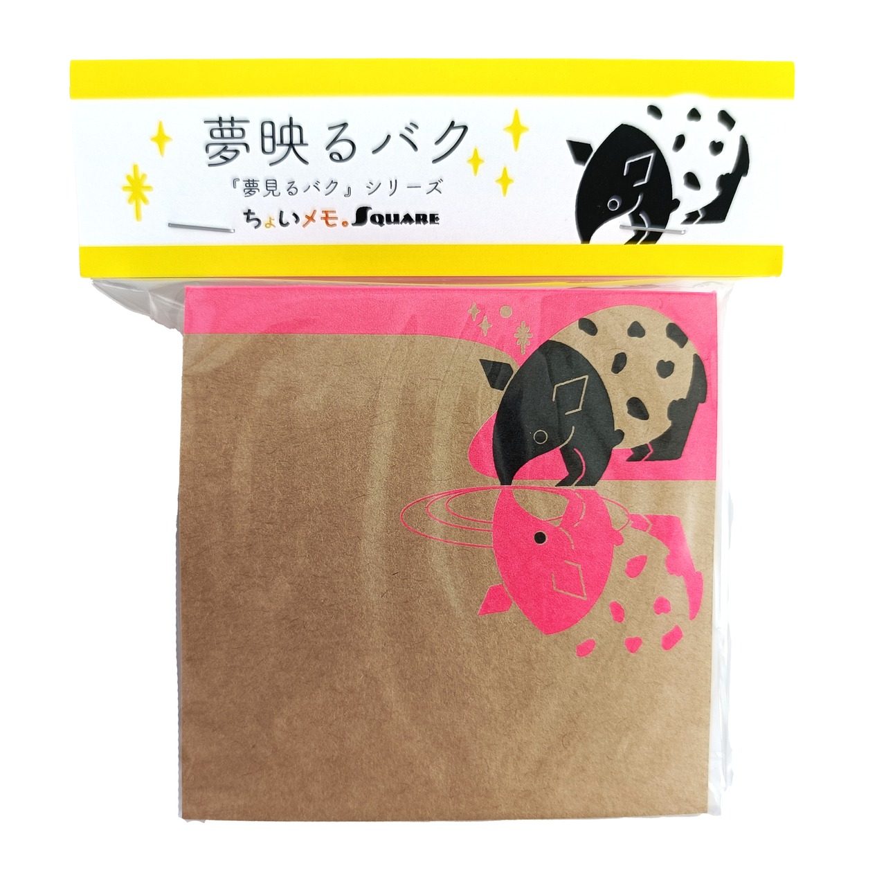 「ちょいメモ。SQUARE」夢映るバク・ピンク・両更クラフト(紙色:茶)