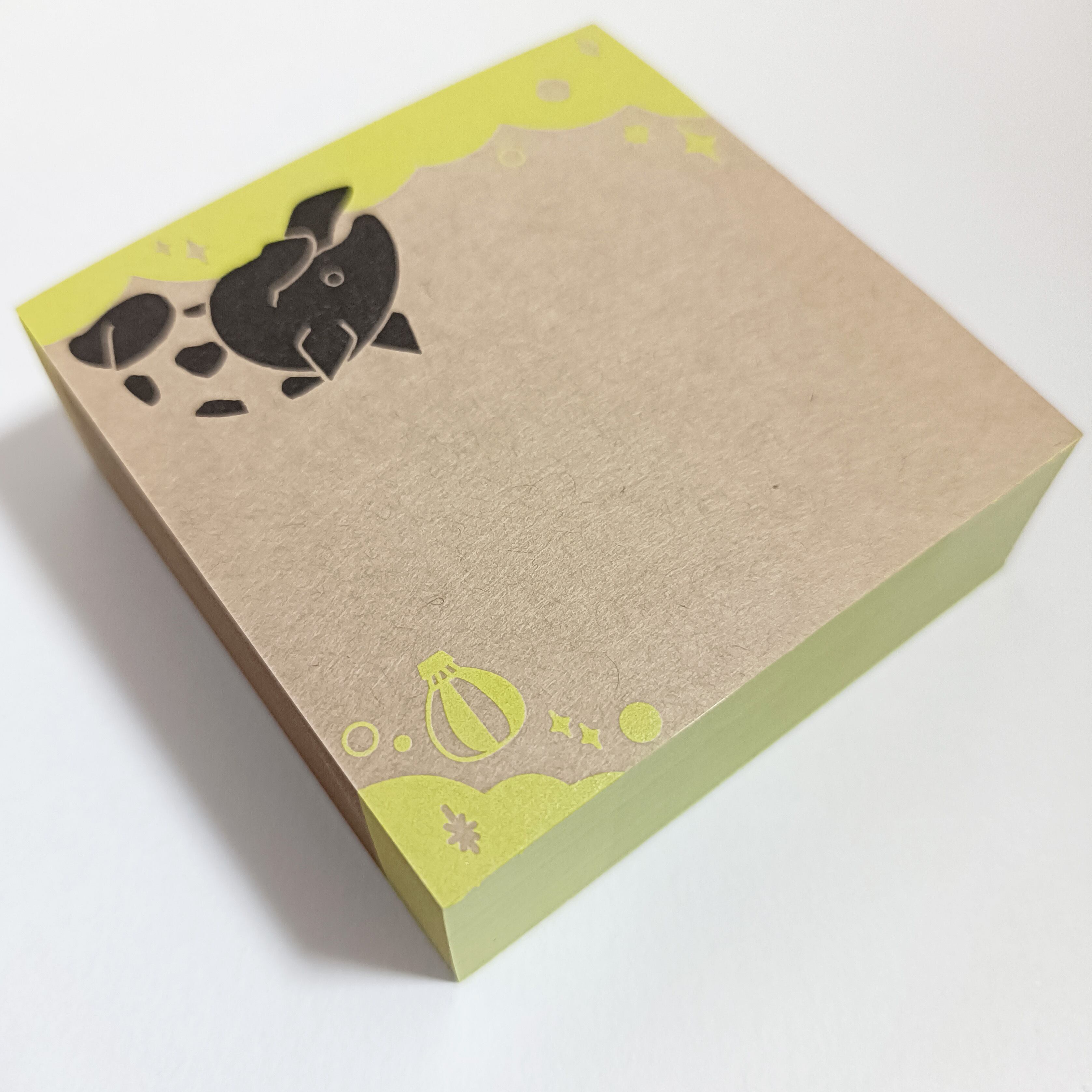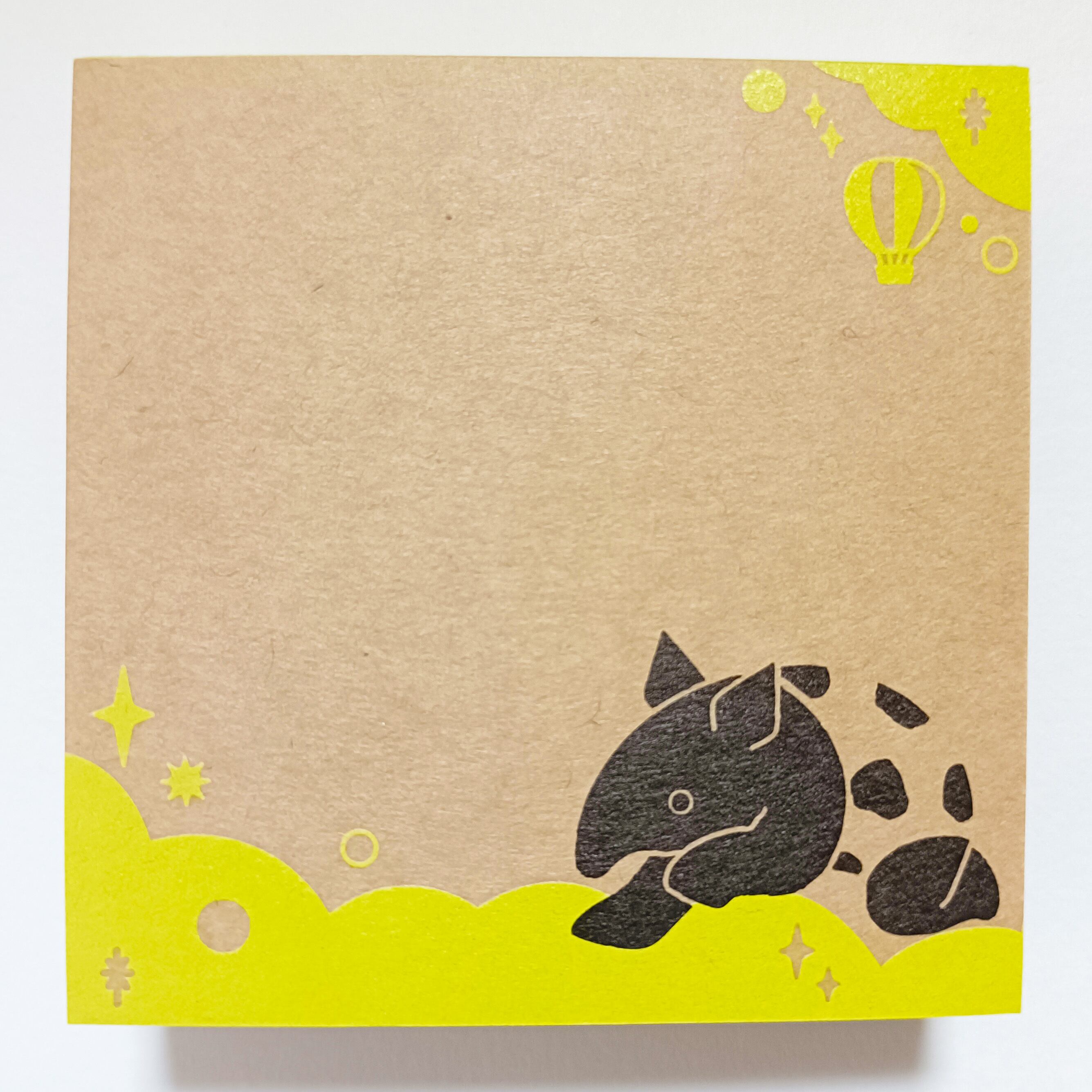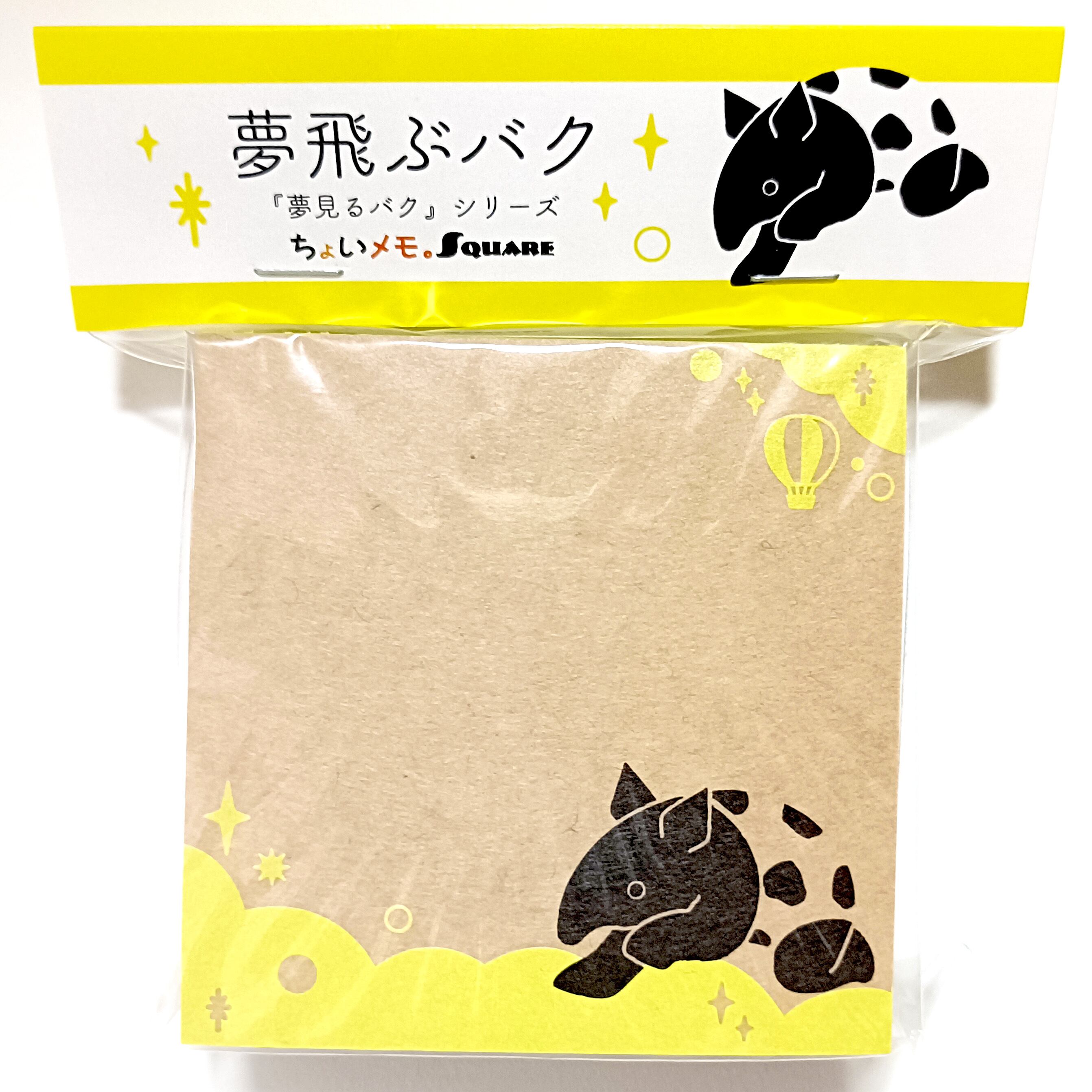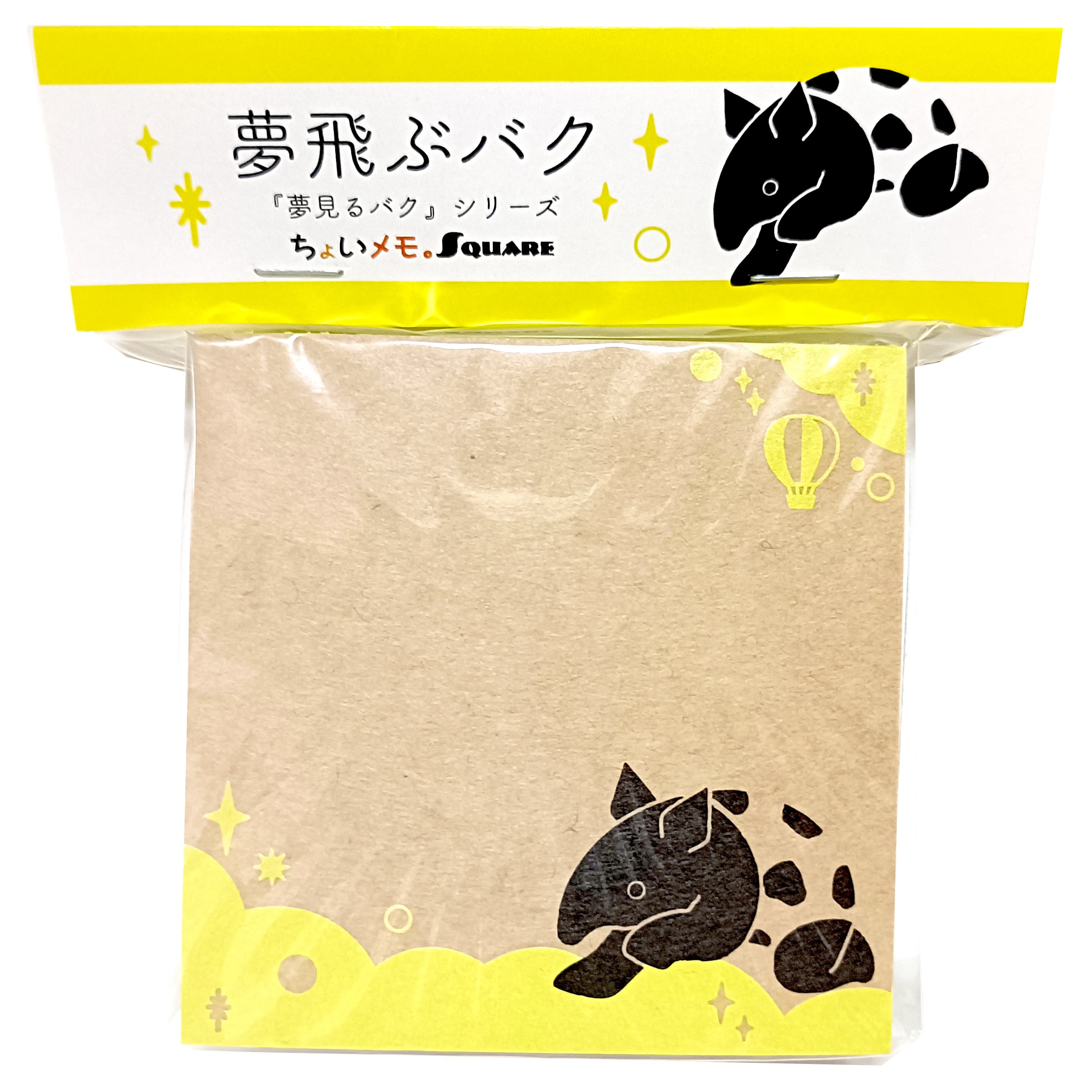 「ちょいメモ。SQUARE」夢飛ぶバク・イエロー・両更クラフト(紙色:茶)