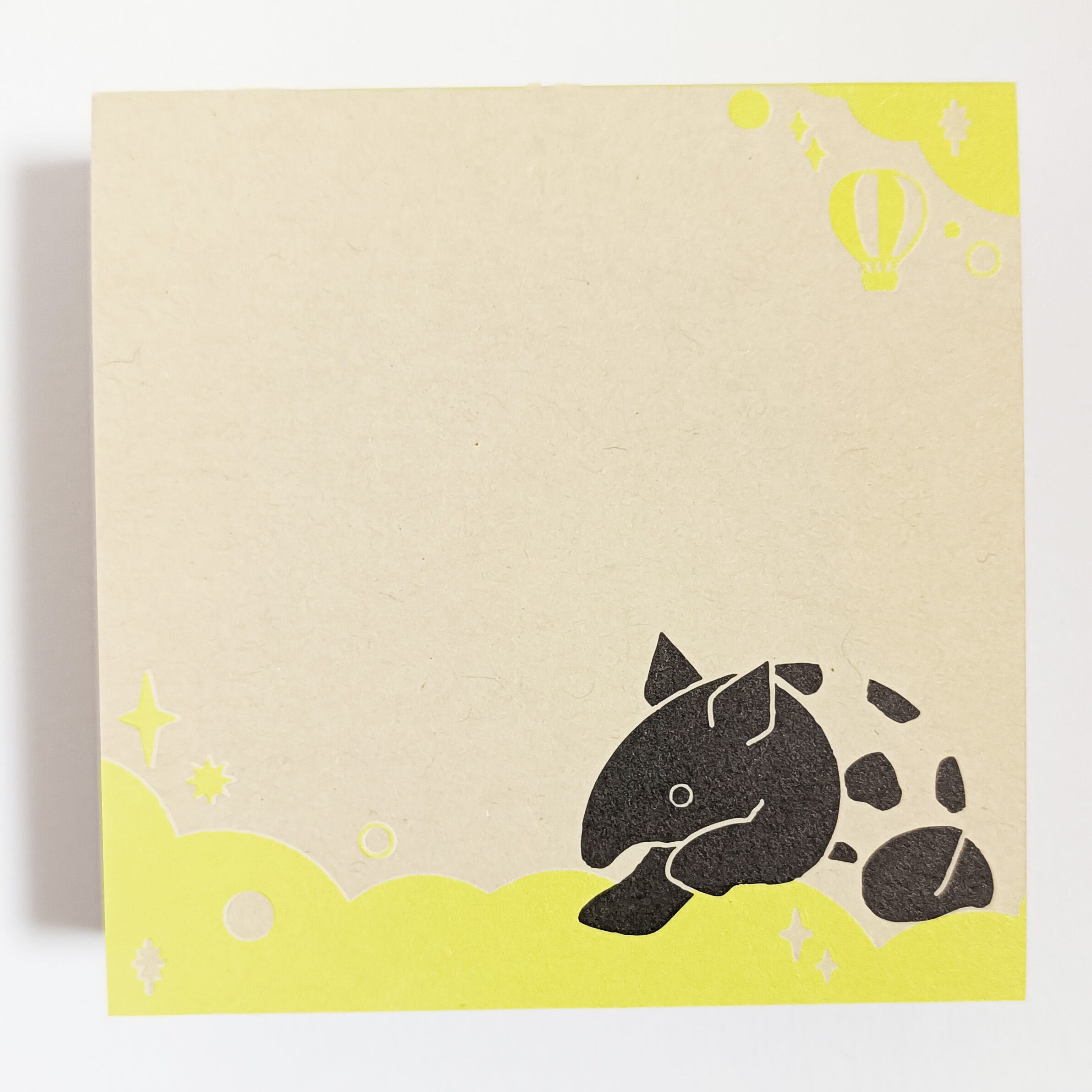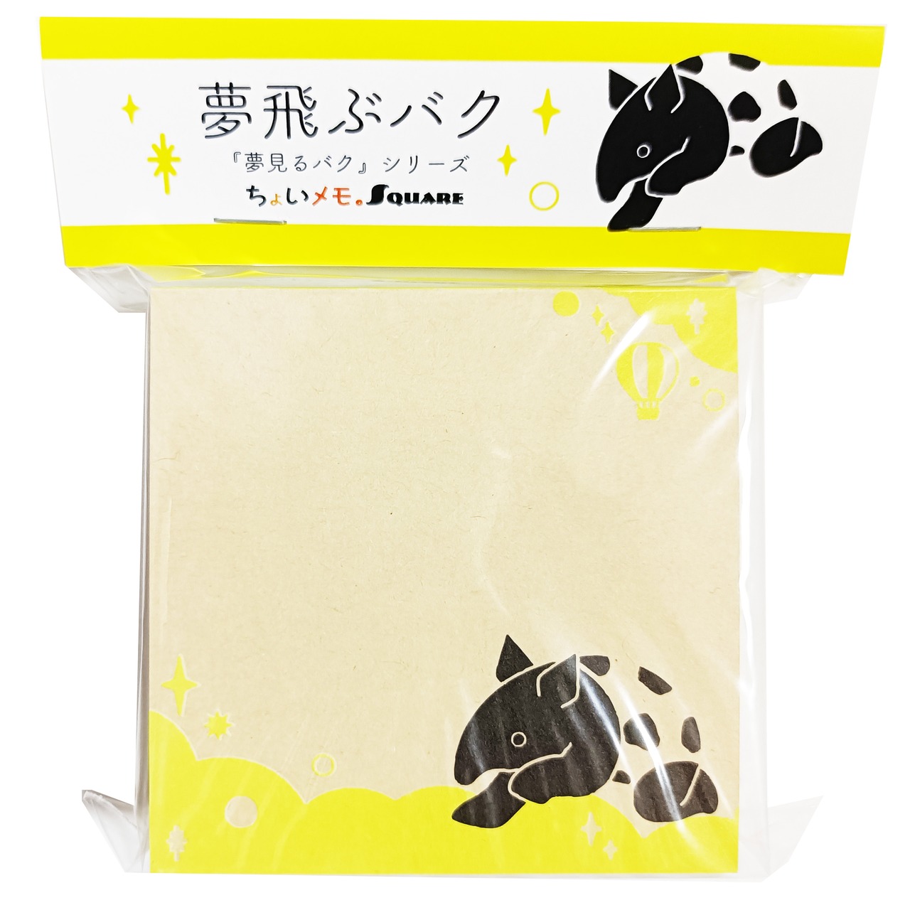 「ちょいメモ。SQUARE」夢飛ぶバク・イエロー・オリンパス(紙色:ベージュ)