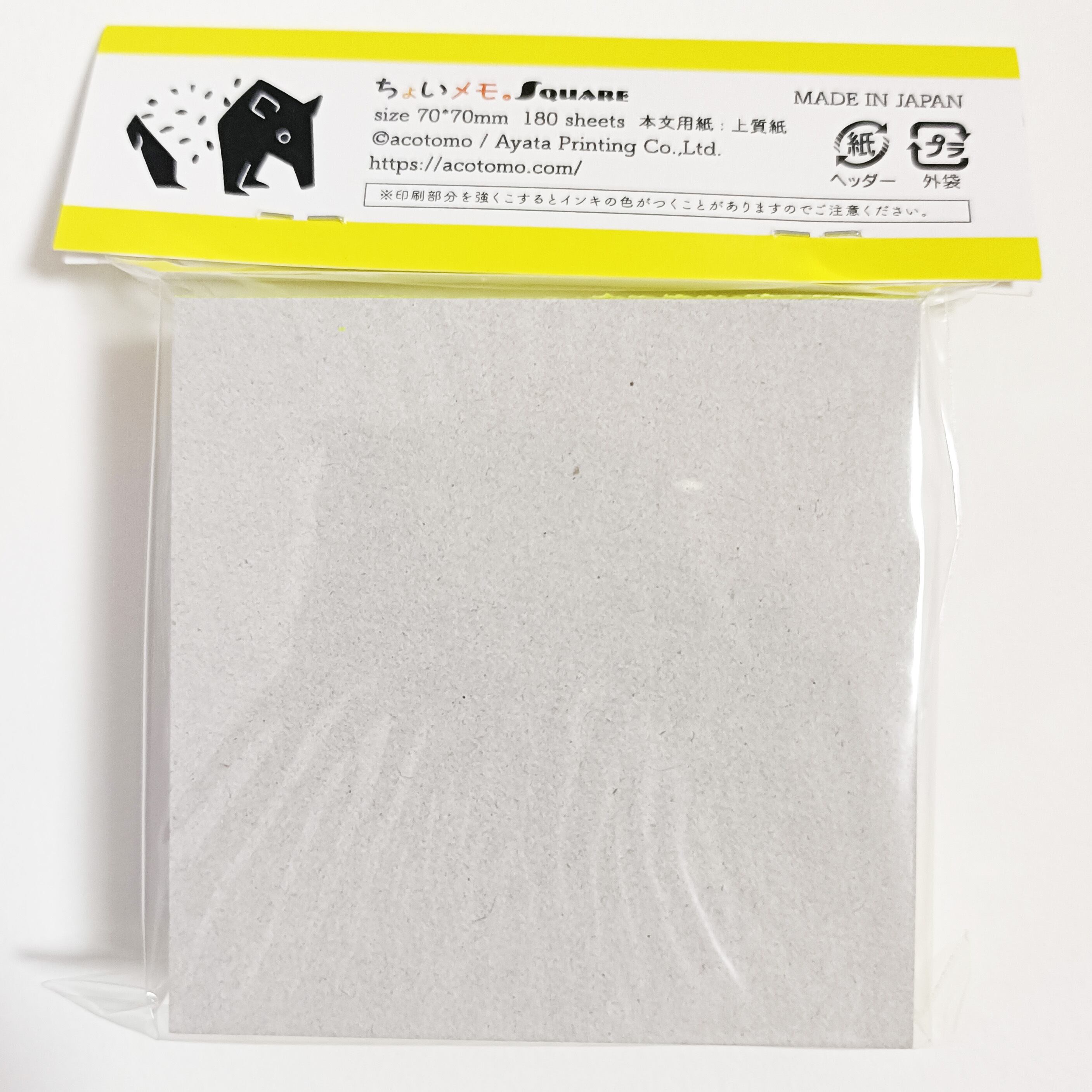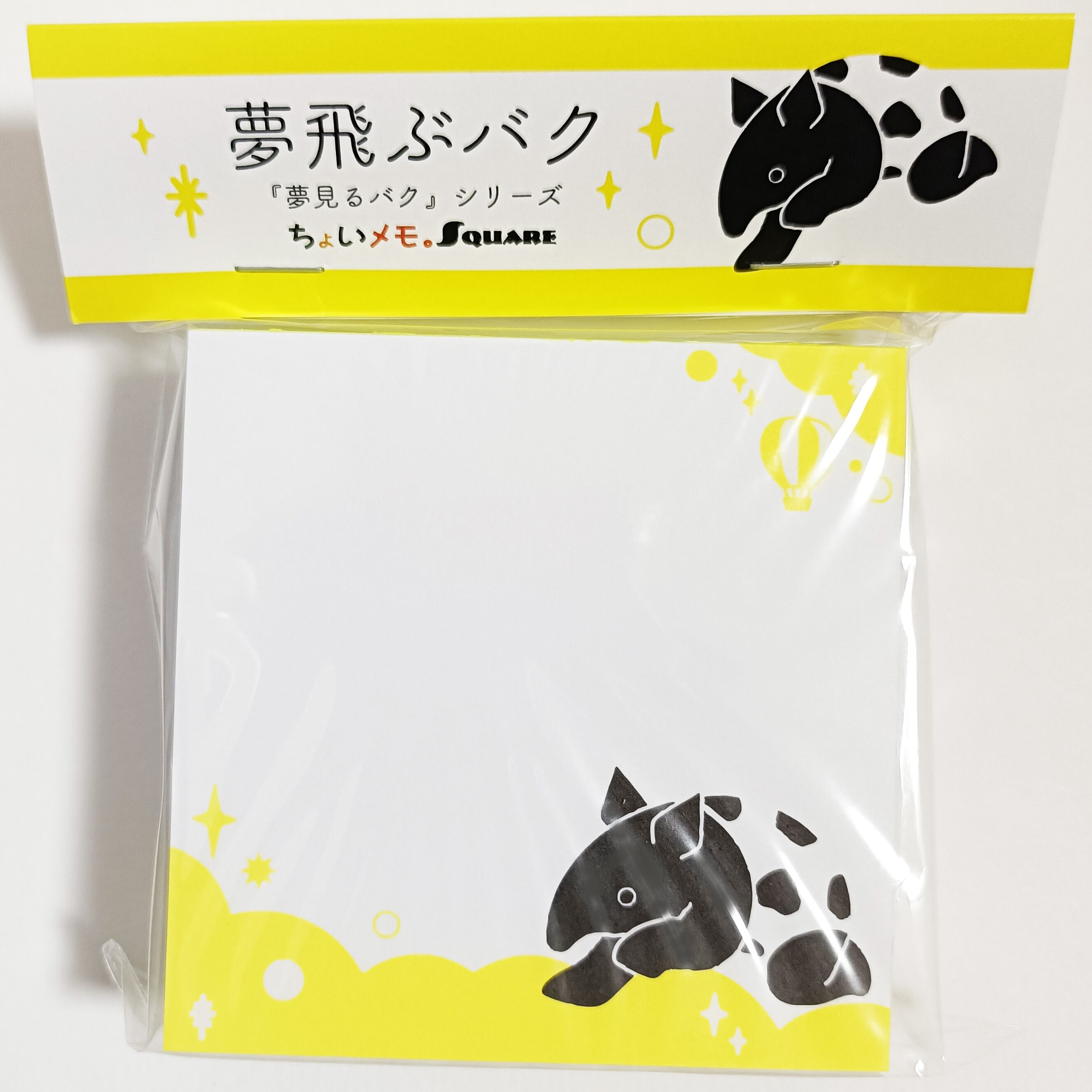 「ちょいメモ。SQUARE」夢飛ぶバク・イエロー・上質紙(紙色:白)