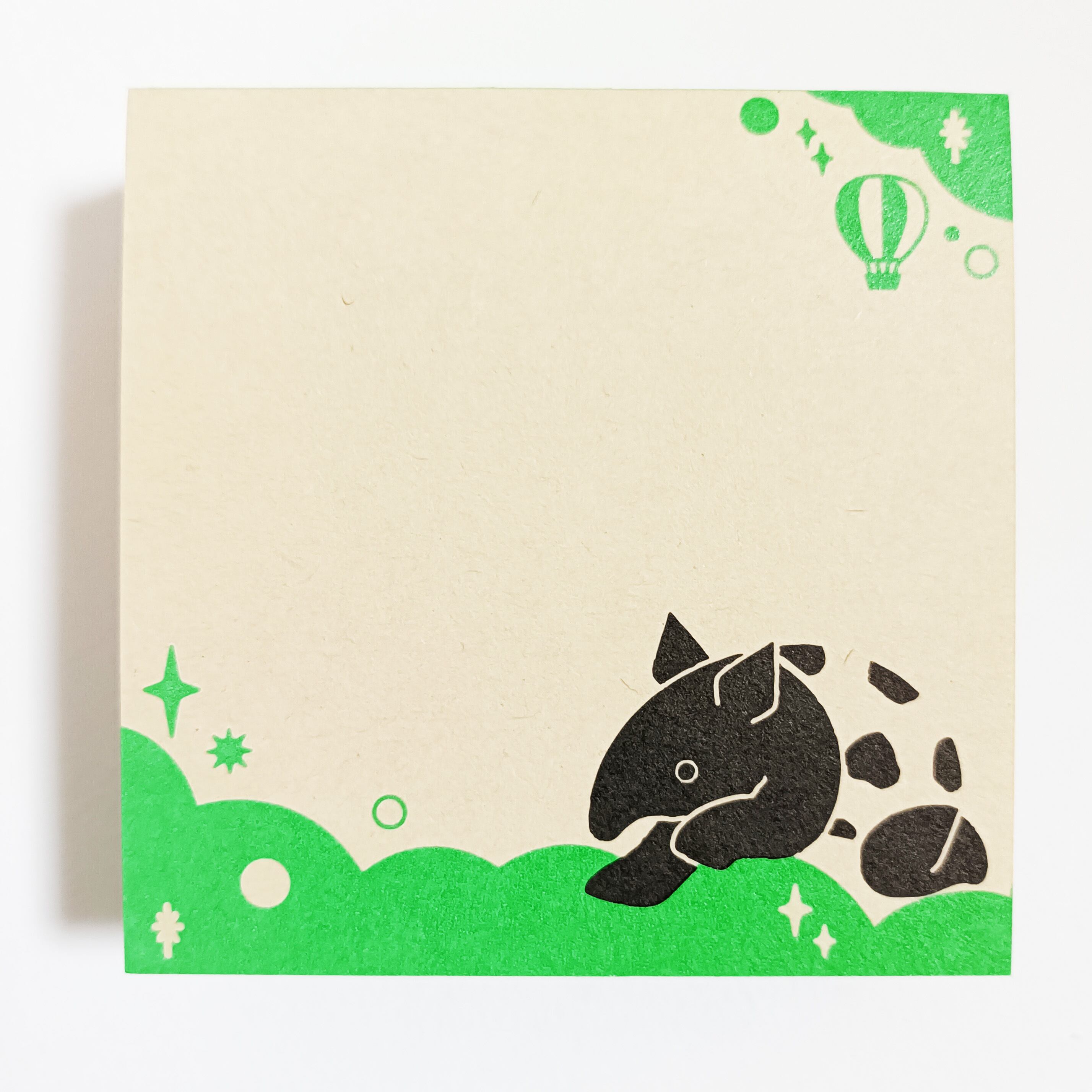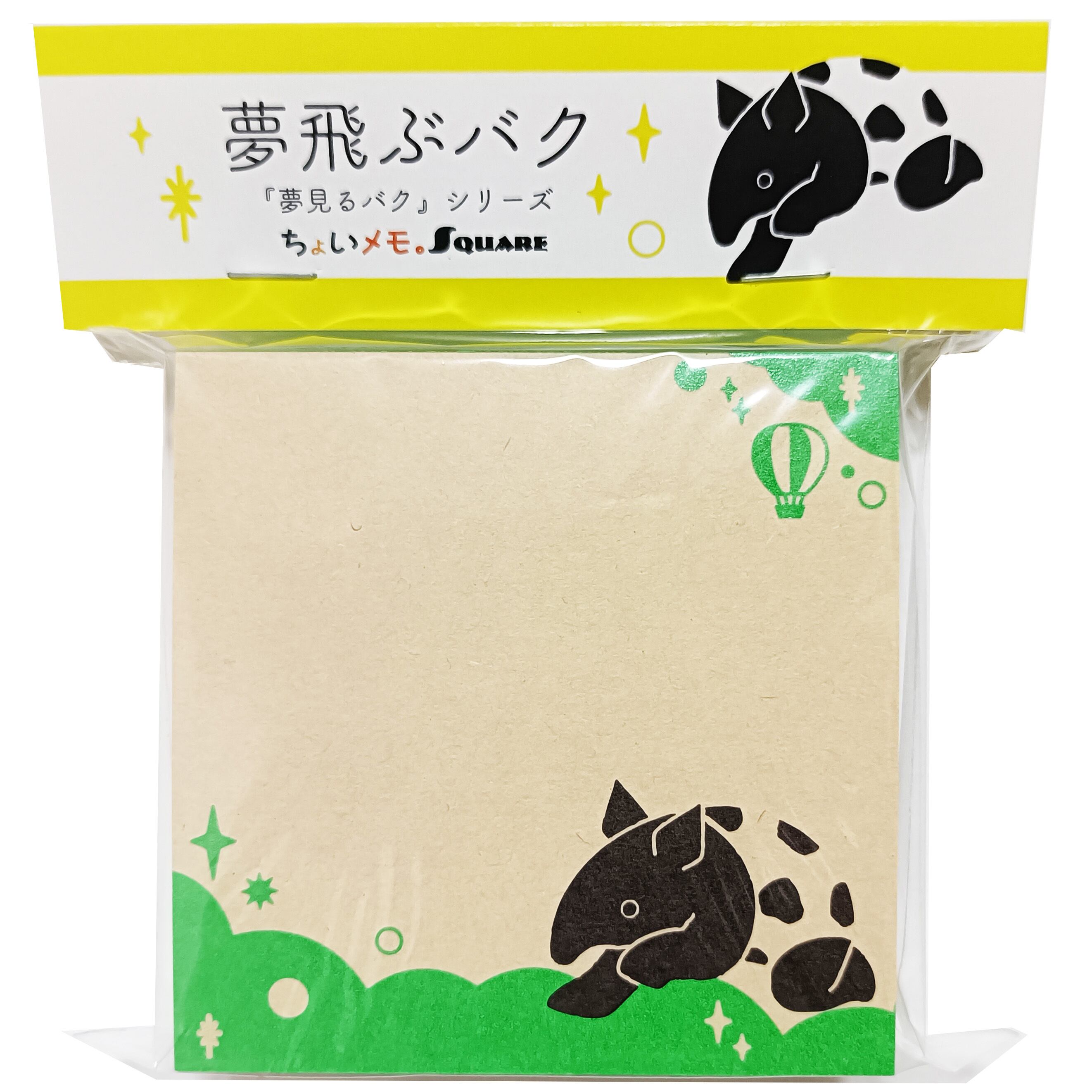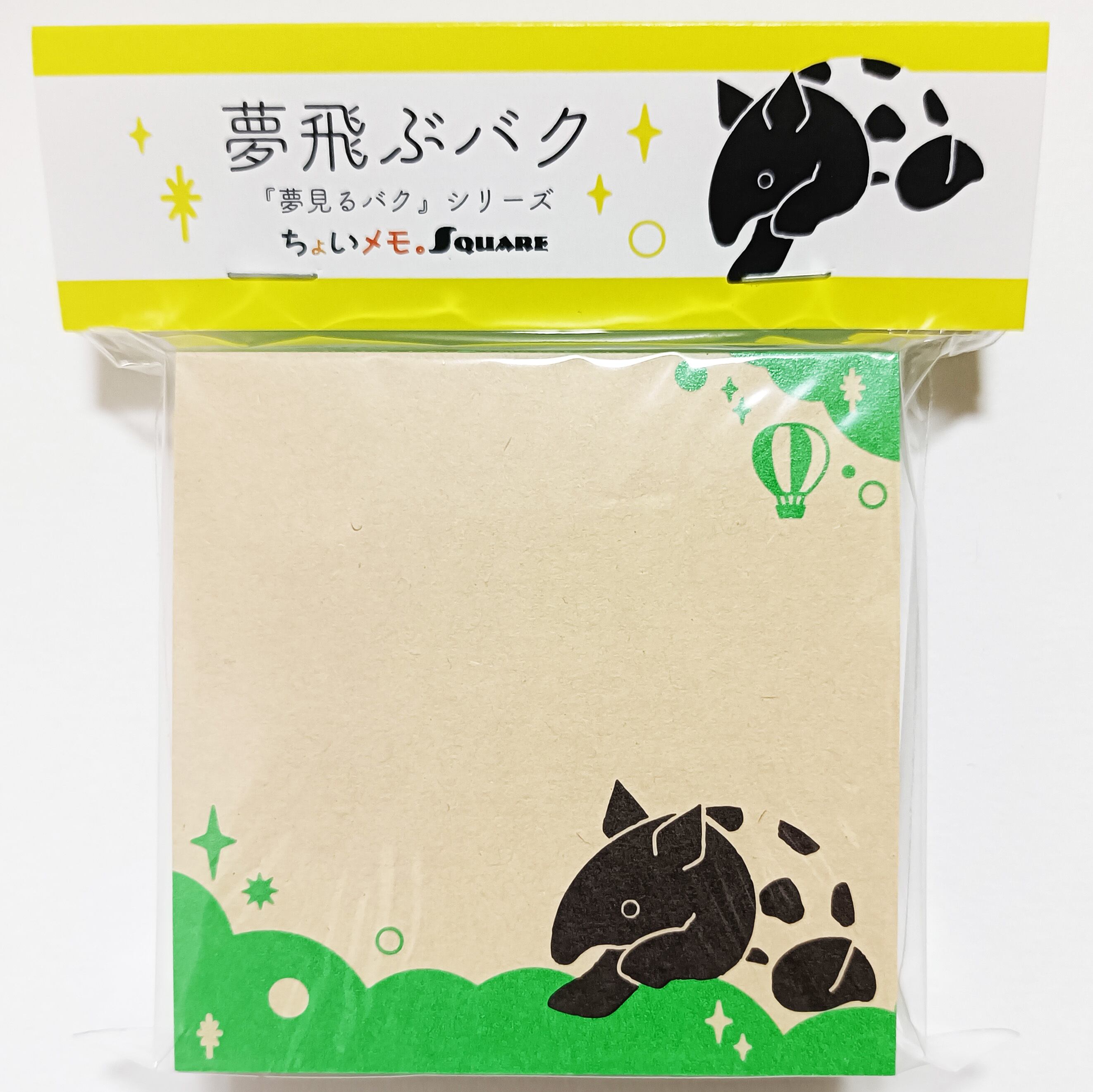 「ちょいメモ。SQUARE」夢飛ぶバク・グリーン・オリンパス(紙色:ベージュ)