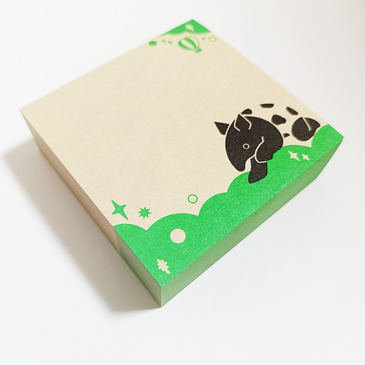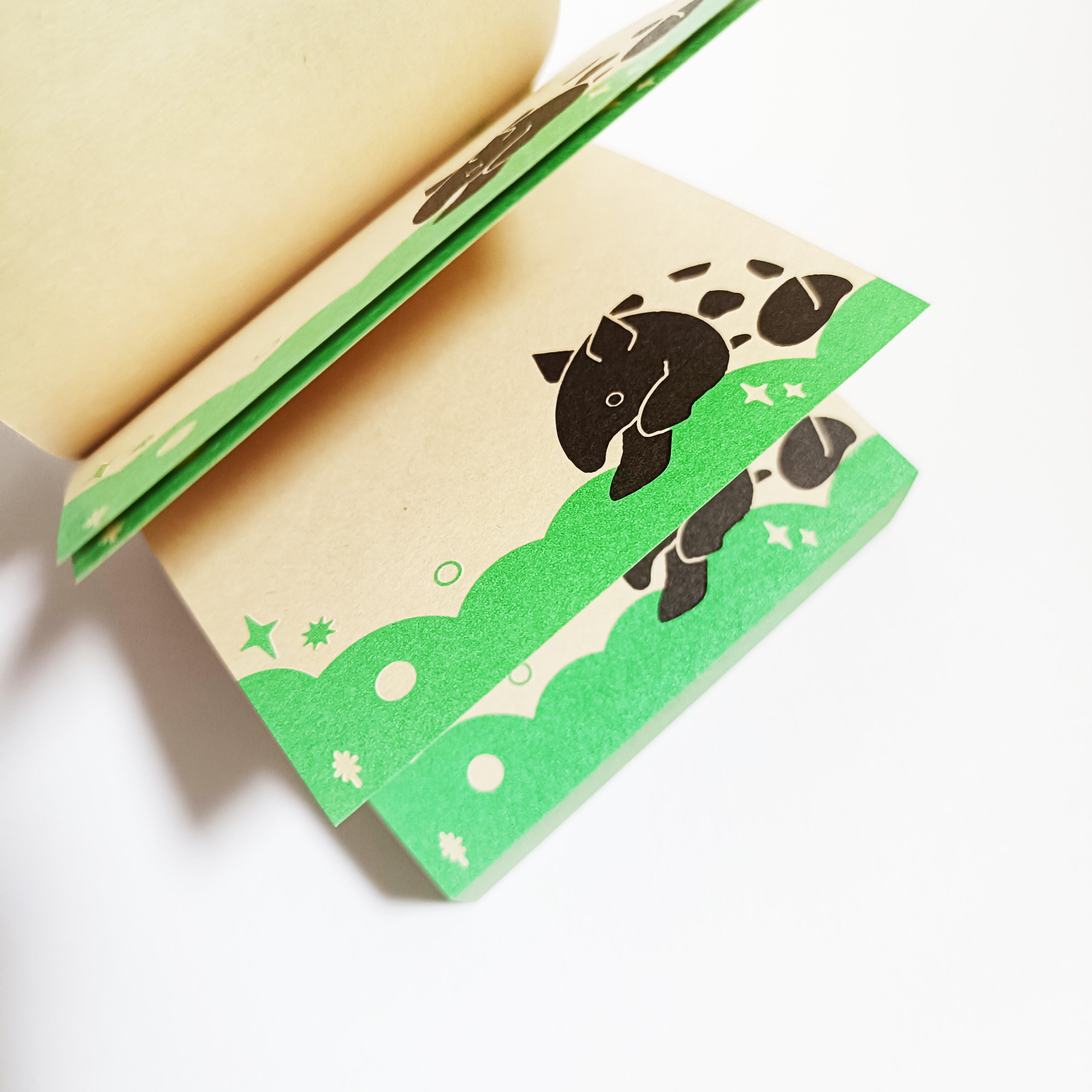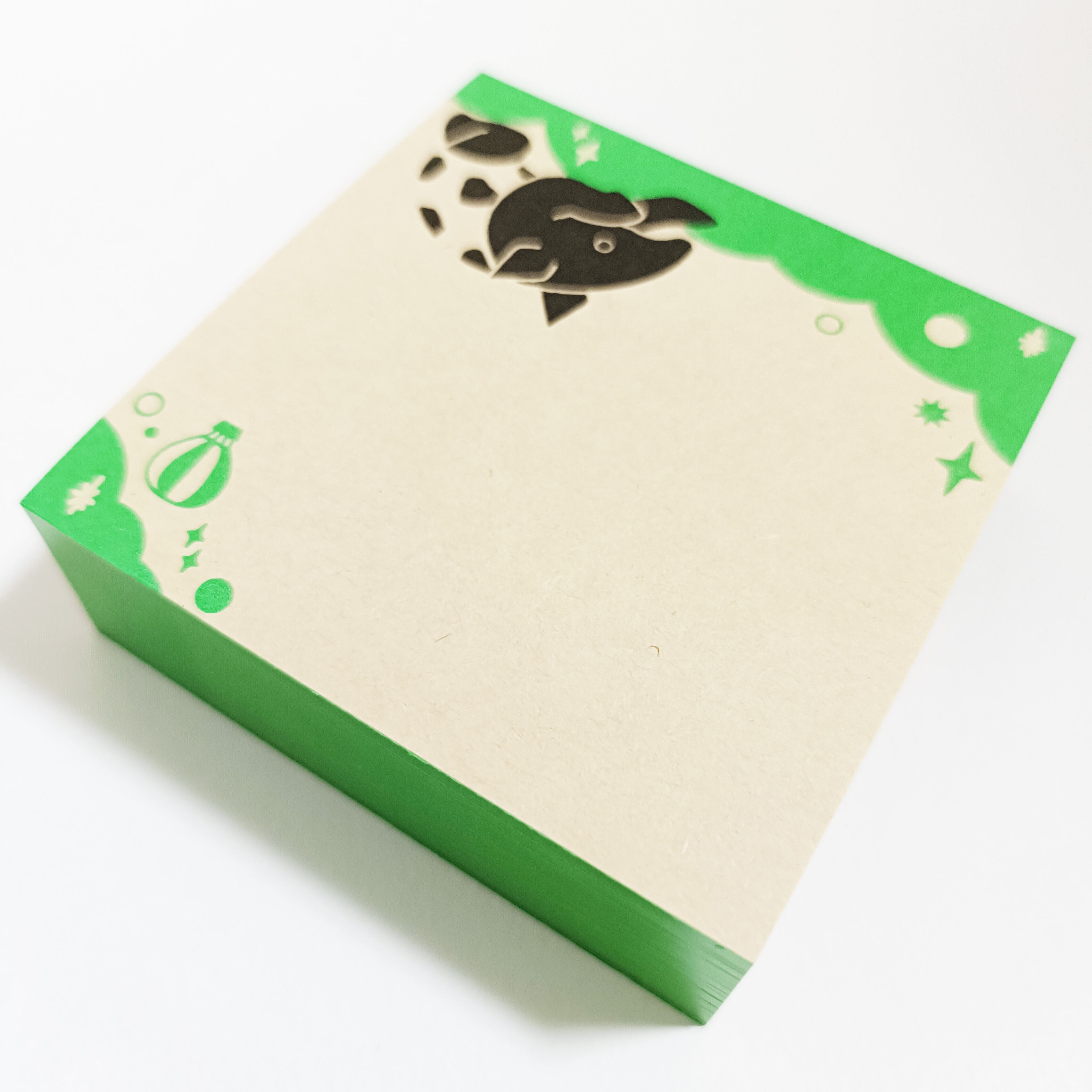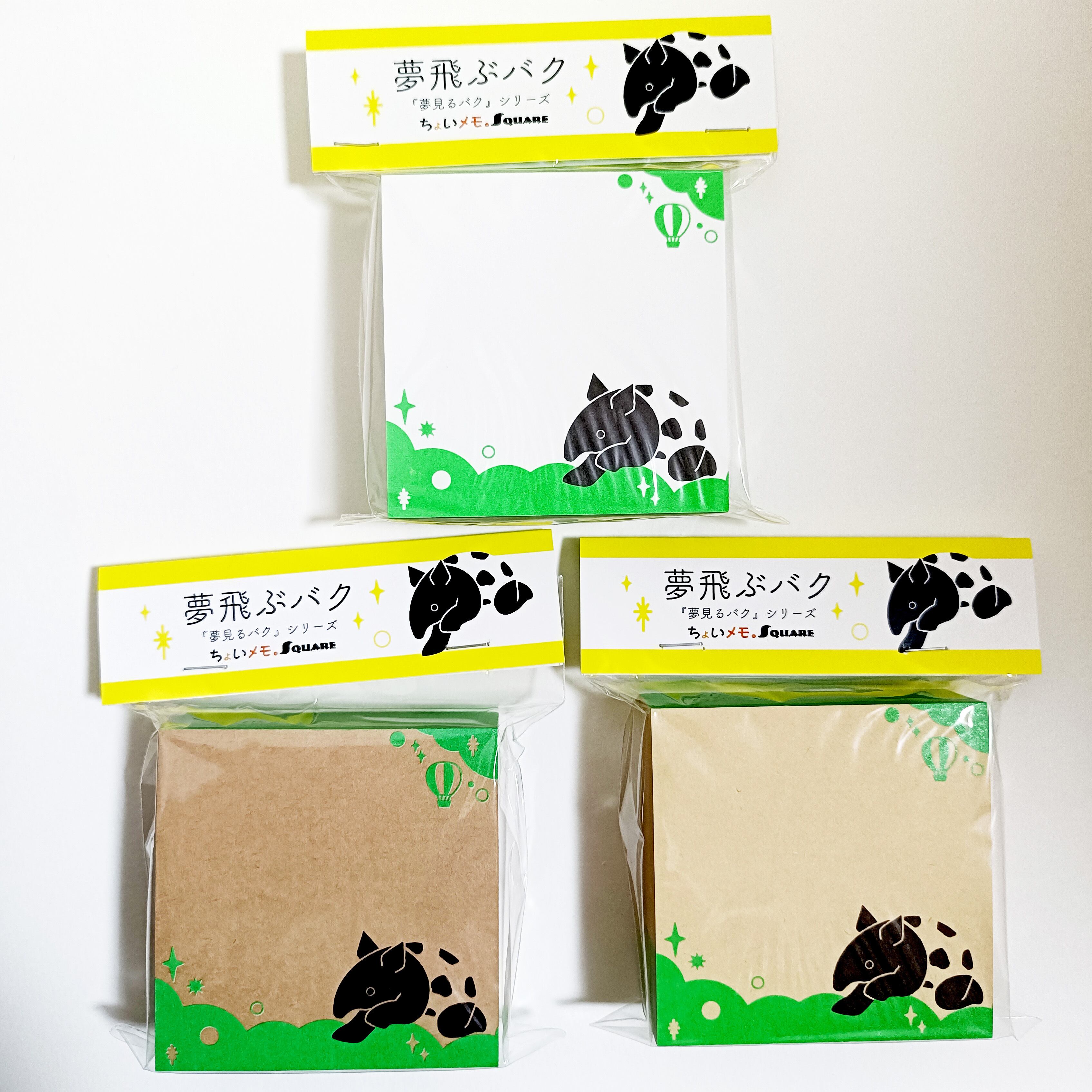 「ちょいメモ。SQUARE」夢飛ぶバク・グリーン・オリンパス(紙色:ベージュ)