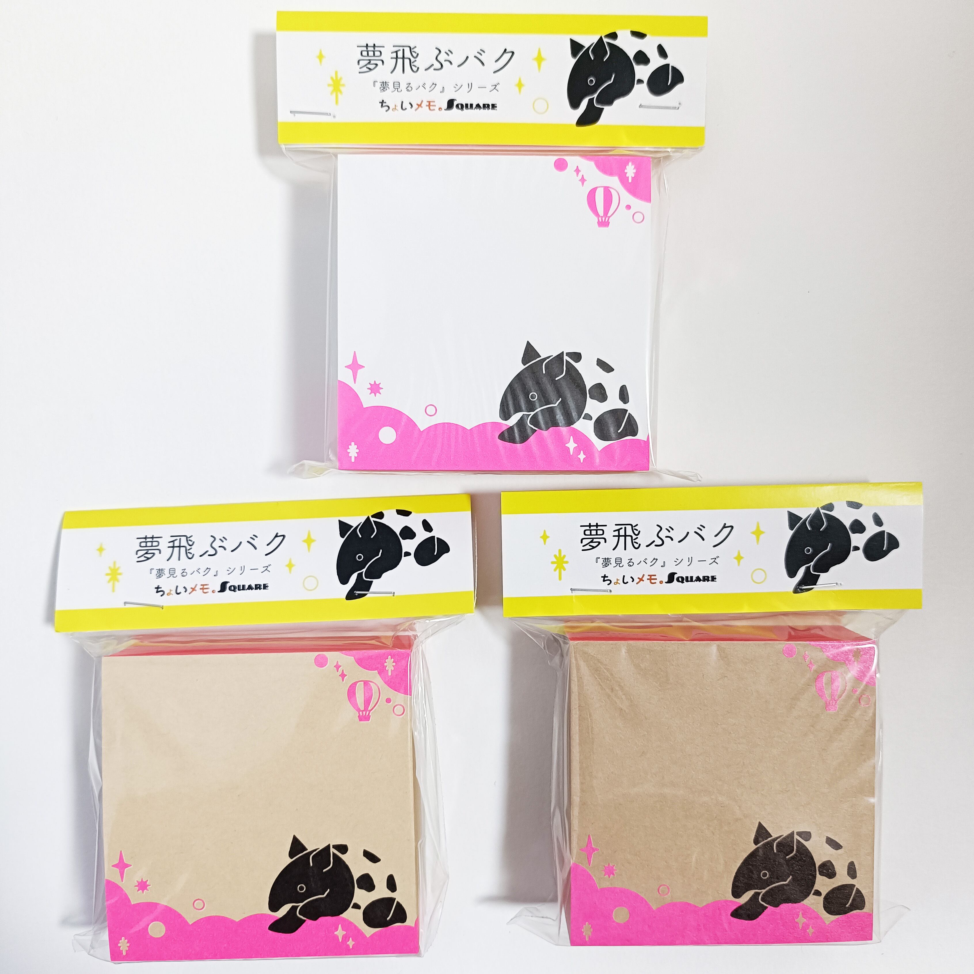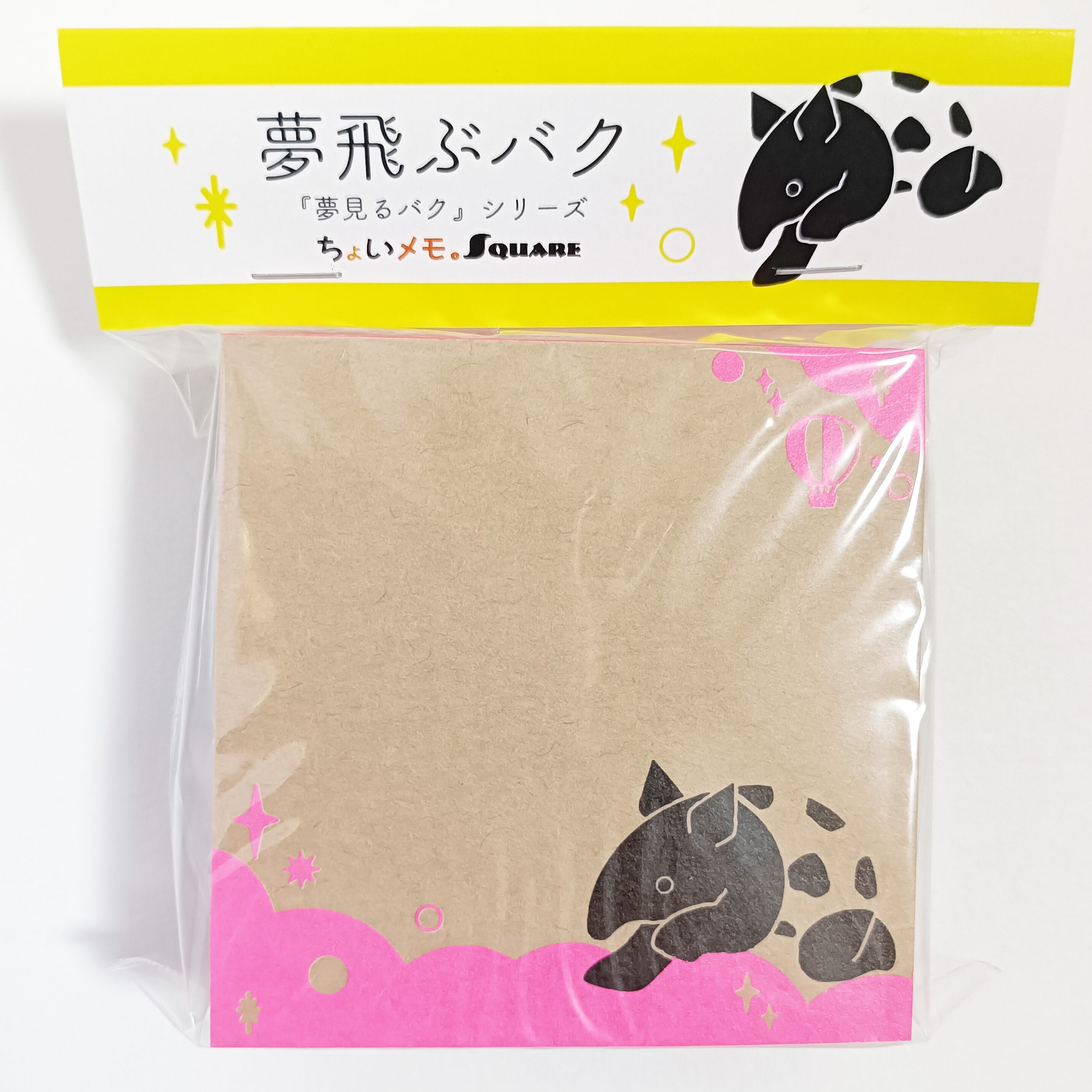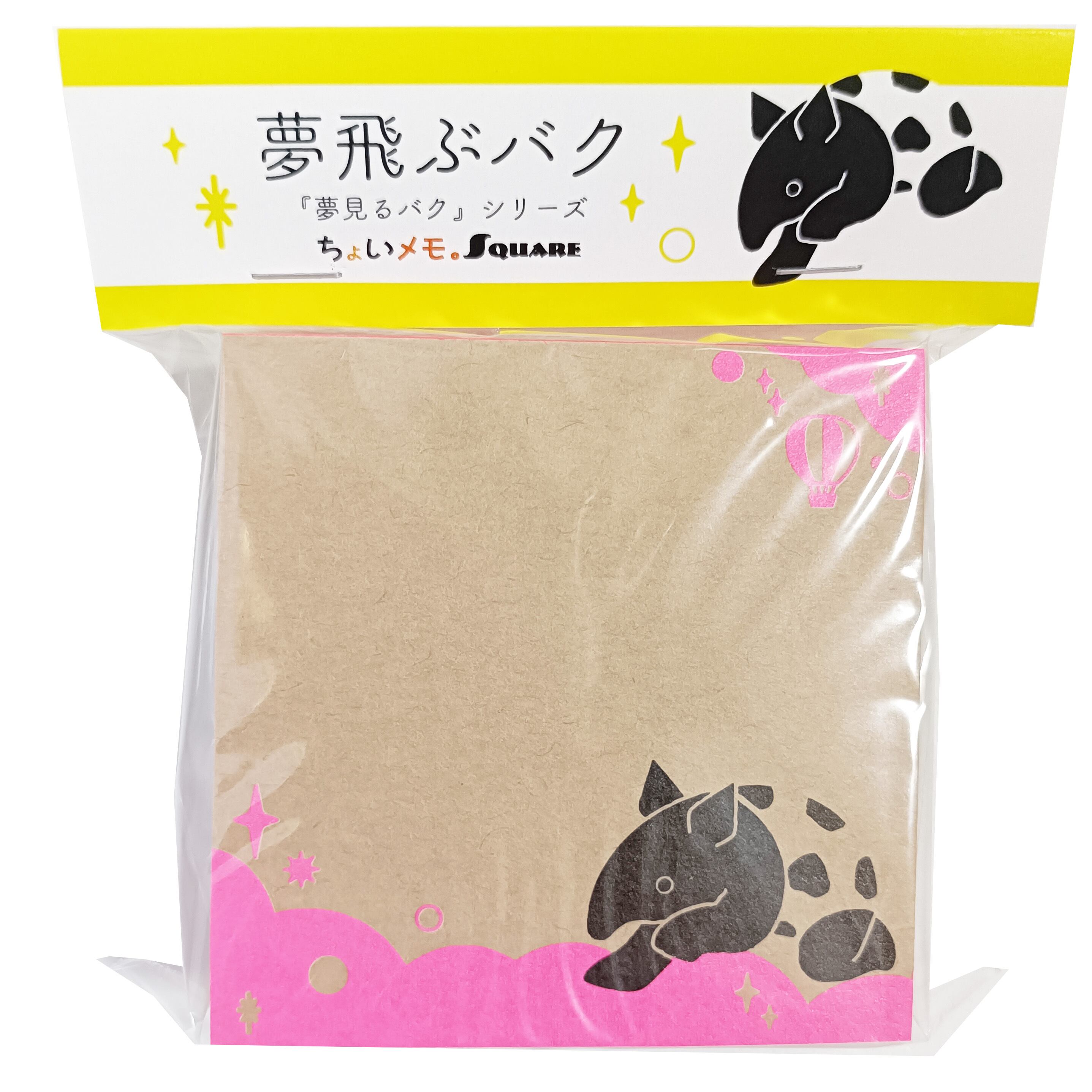 「ちょいメモ。SQUARE」夢飛ぶバク・ピンク・両更クラフト(紙色:茶)