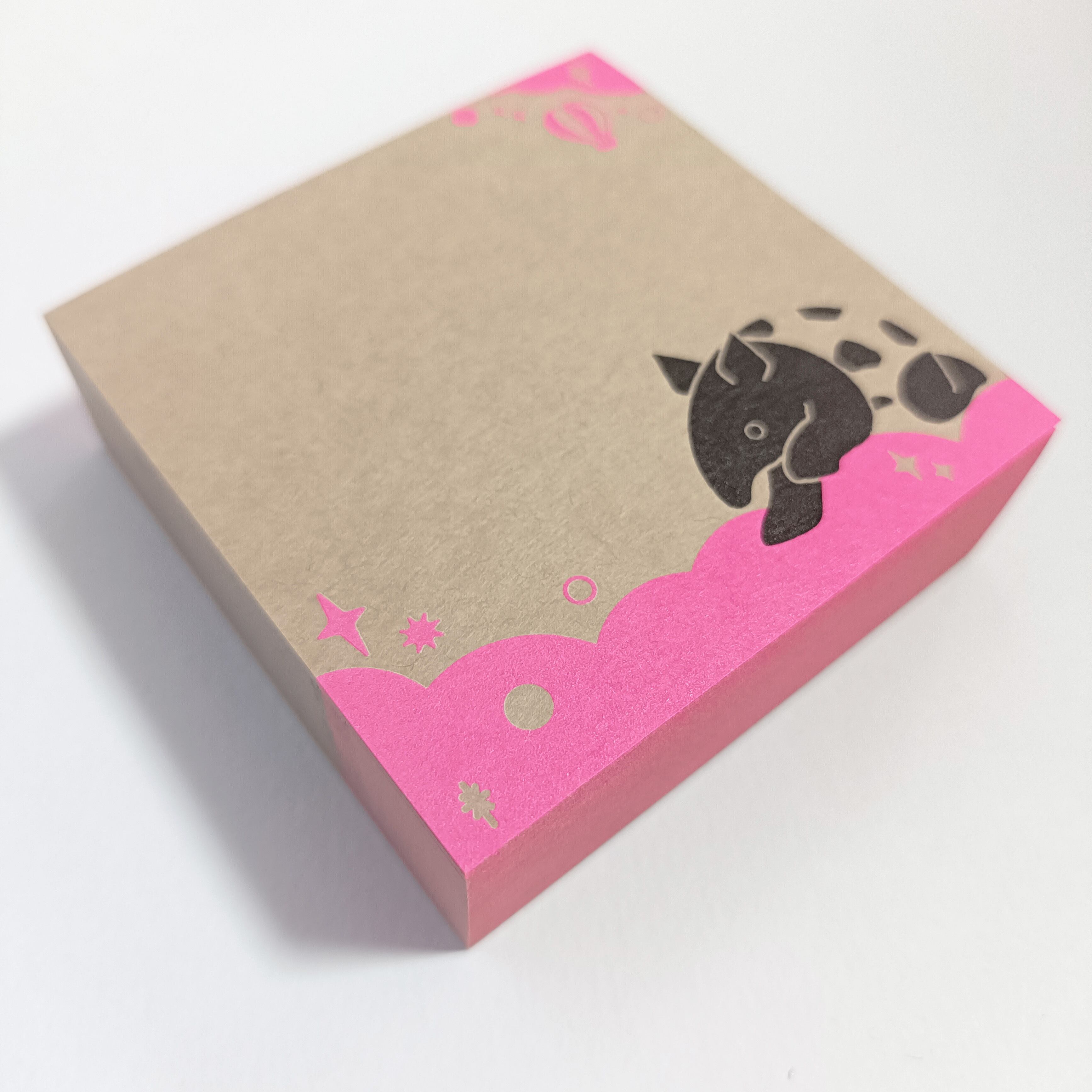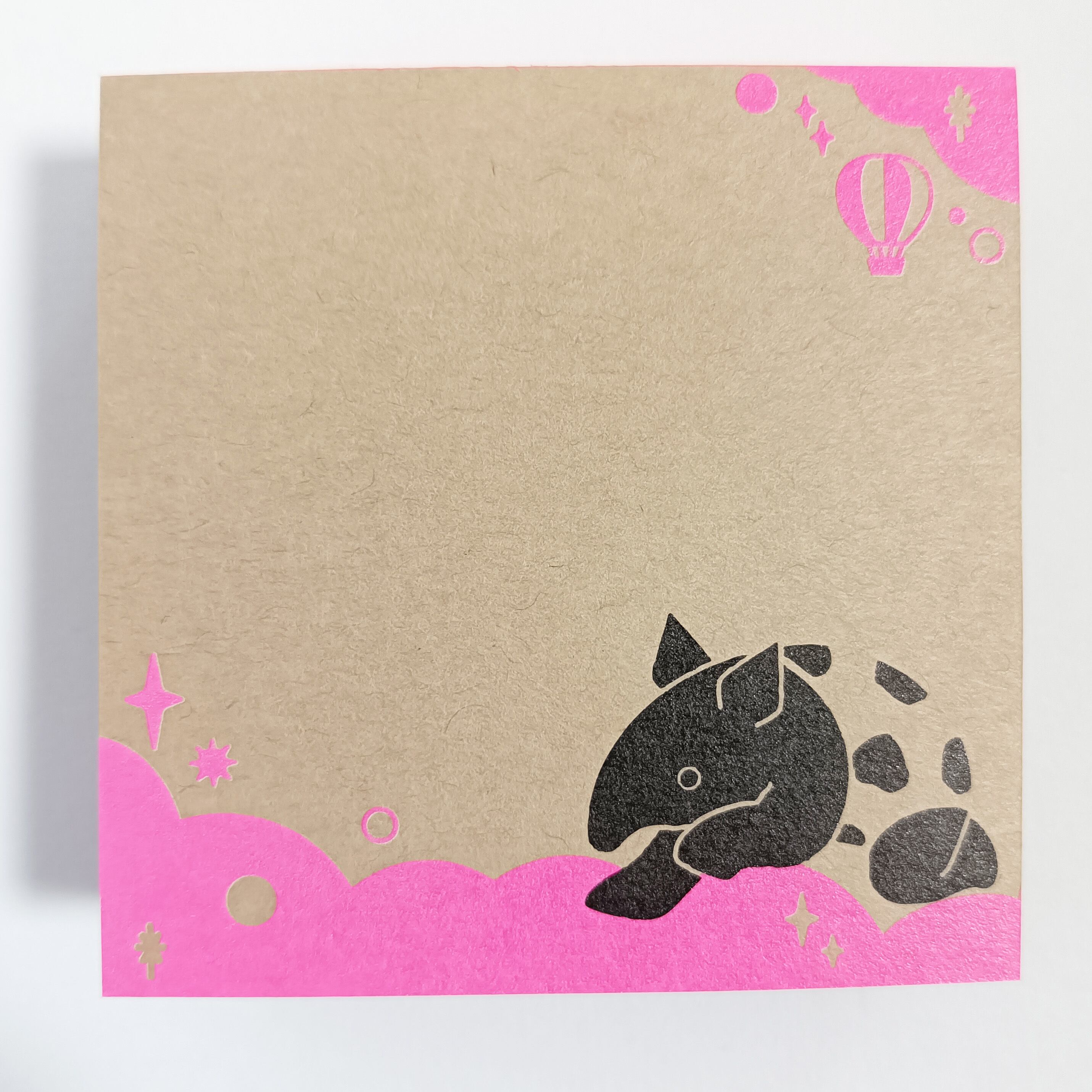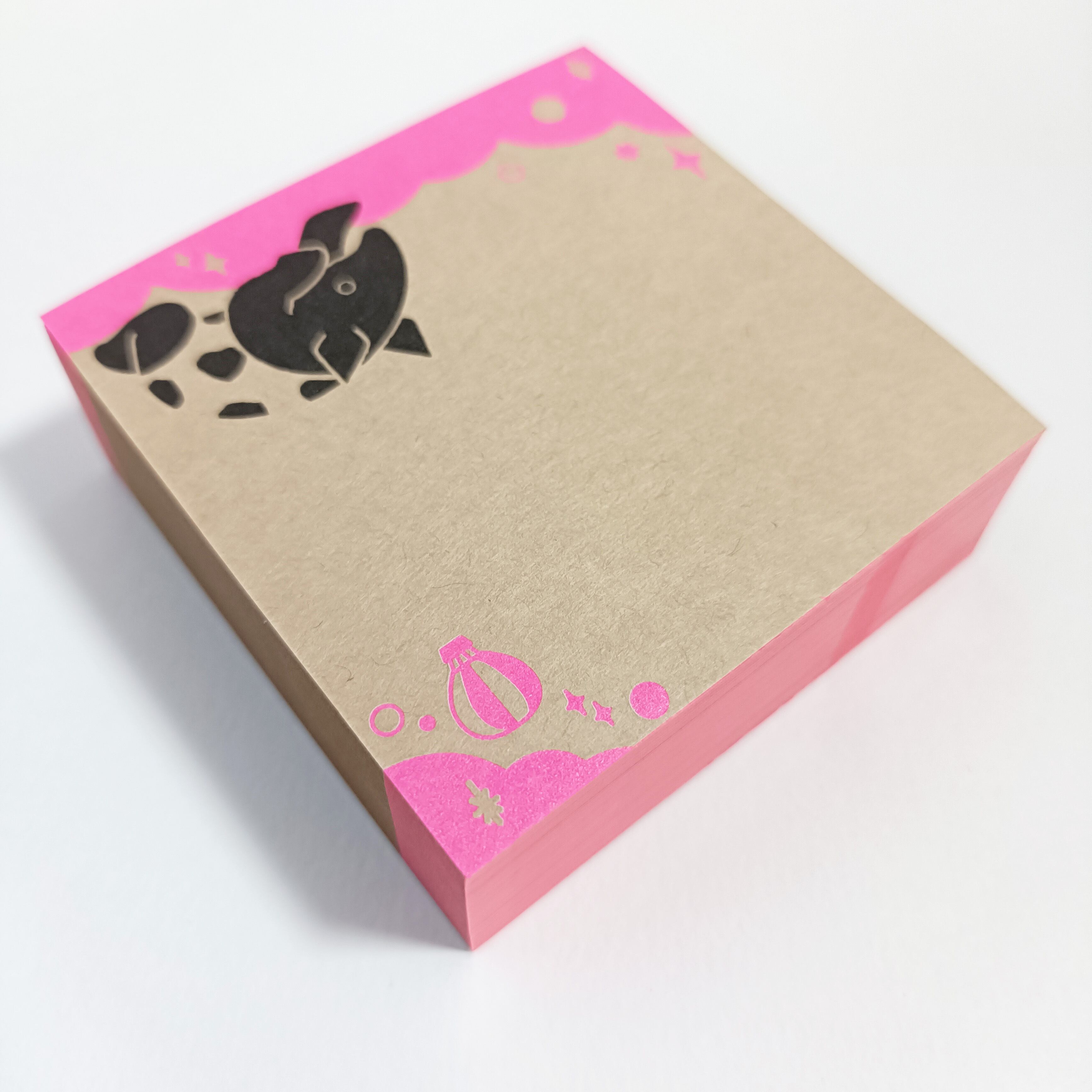 「ちょいメモ。SQUARE」夢飛ぶバク・ピンク・両更クラフト(紙色:茶)