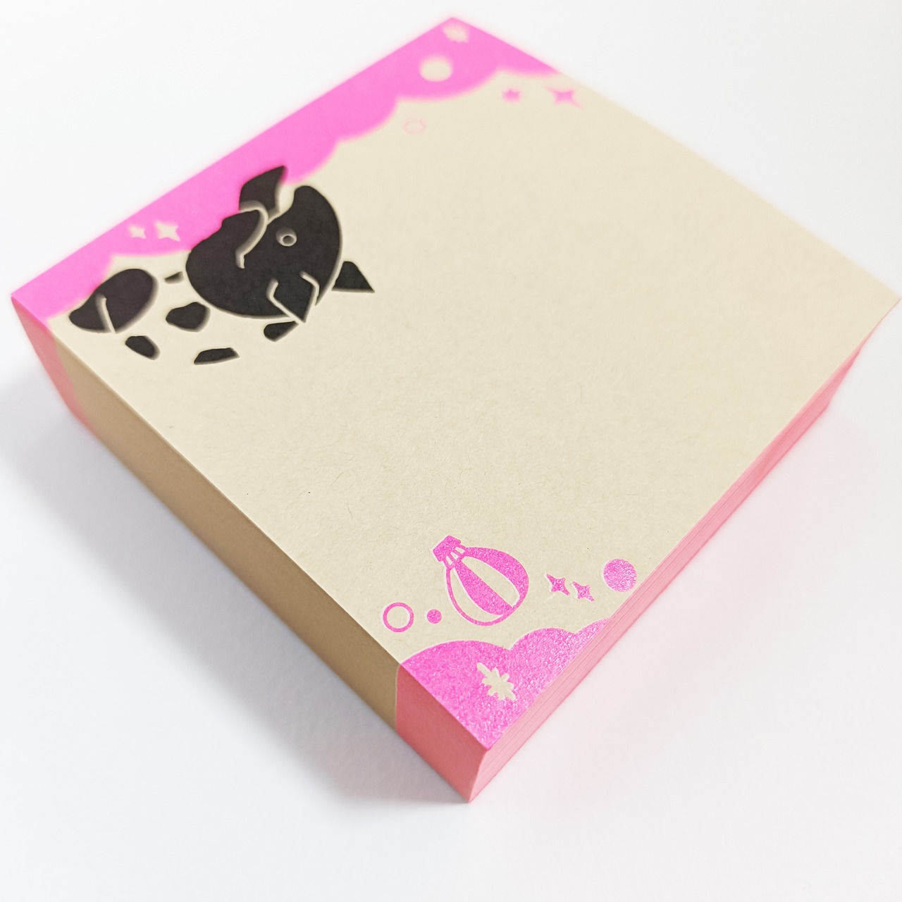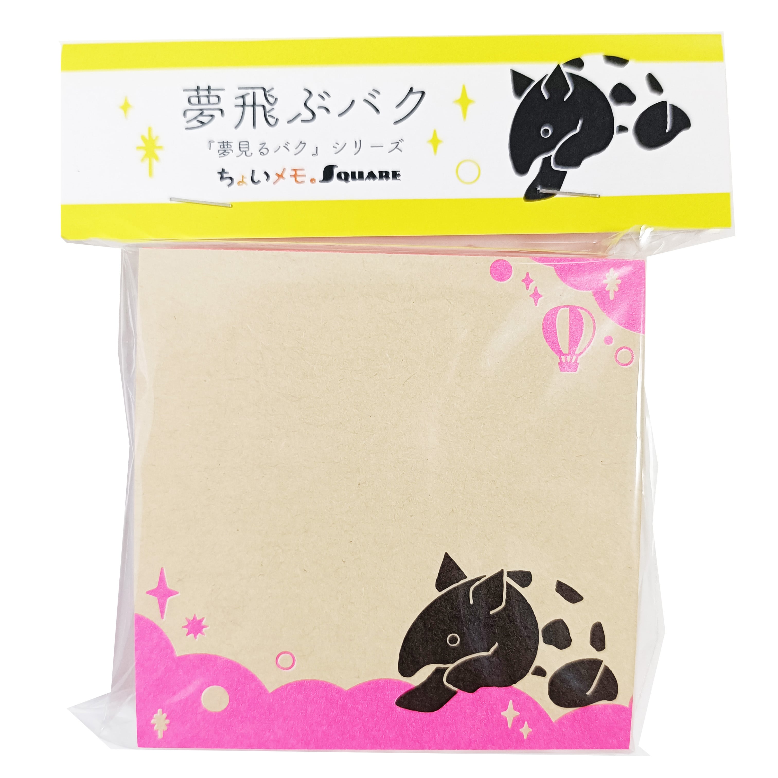 「ちょいメモ。SQUARE」夢飛ぶバク・ピンク・オリンパス(紙色:ベージュ)