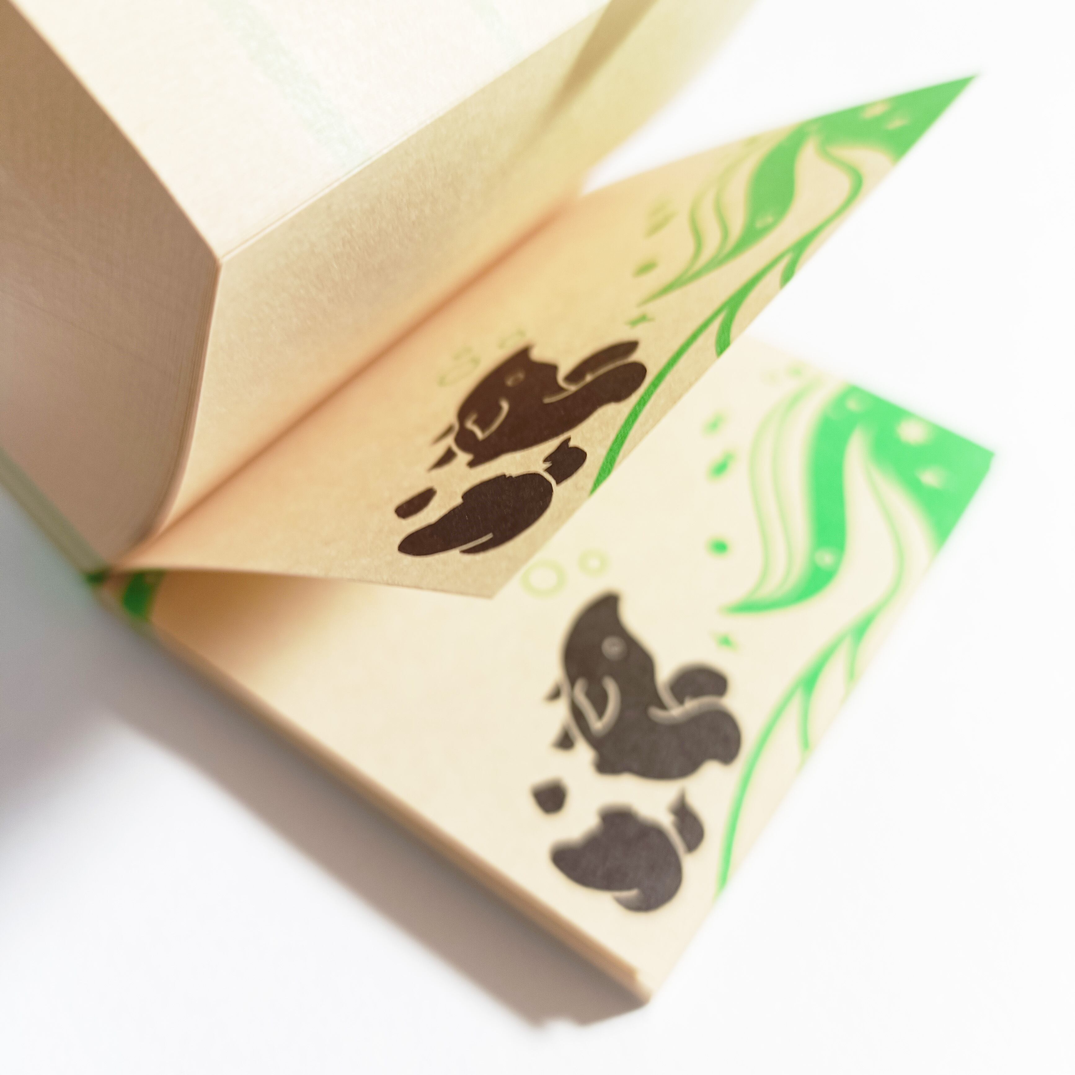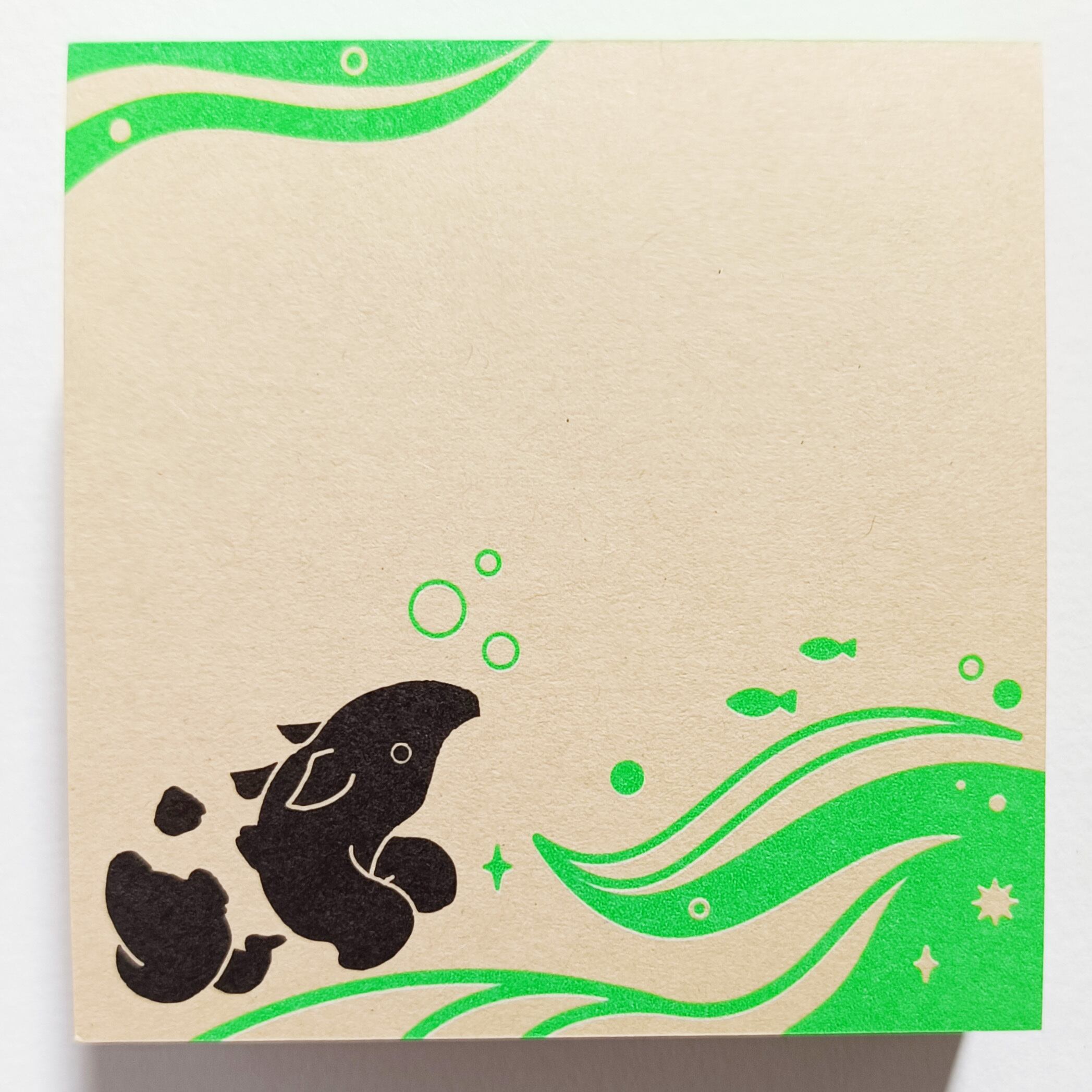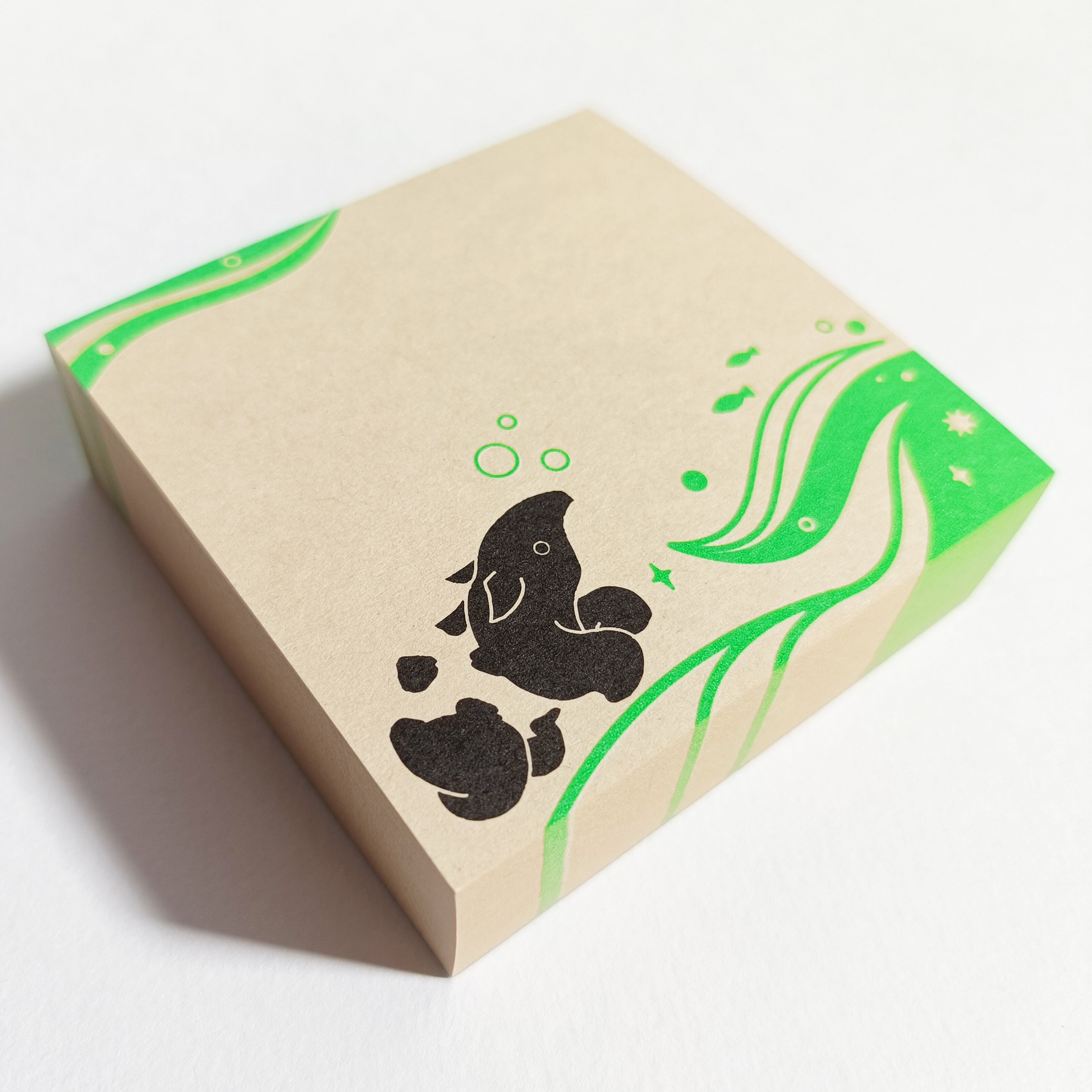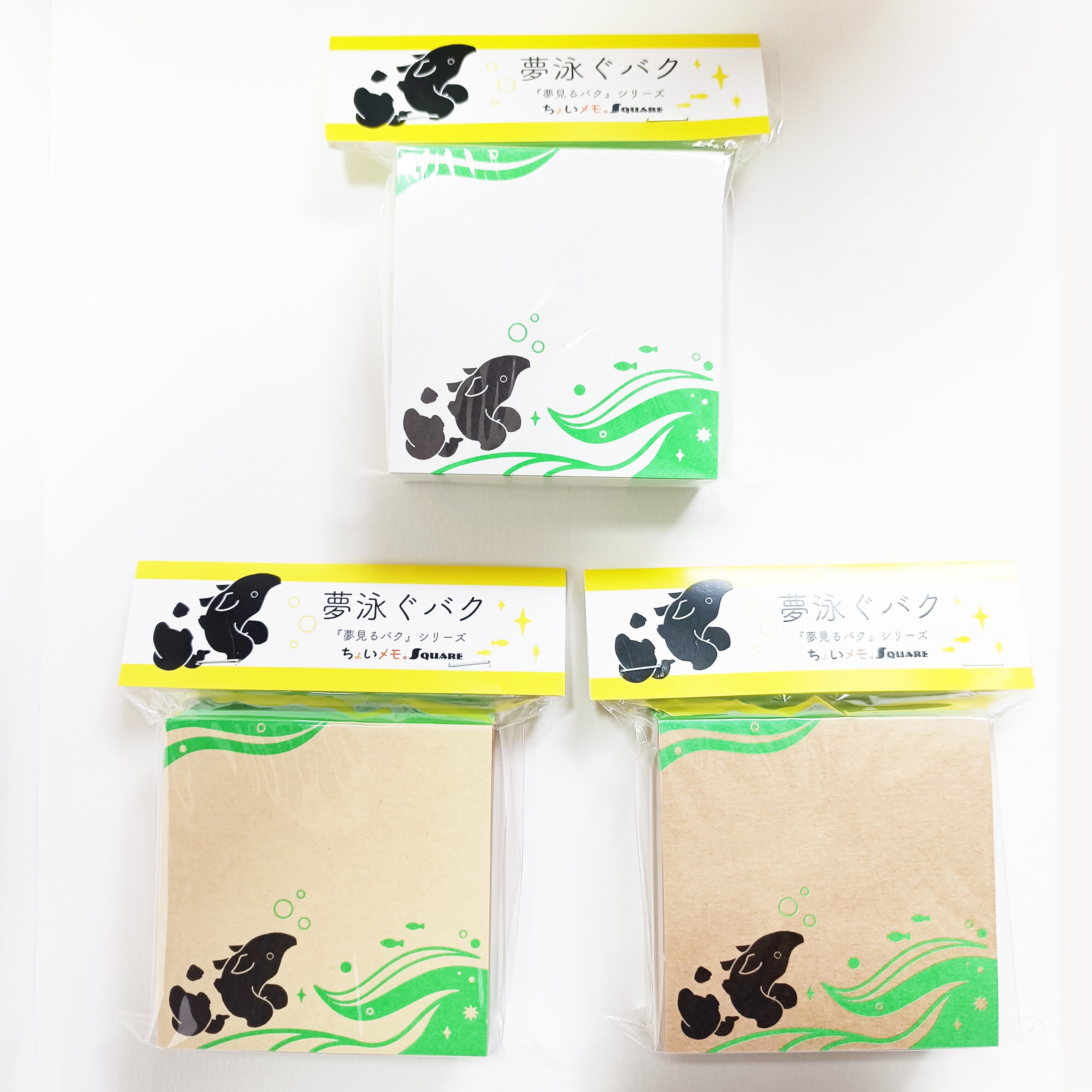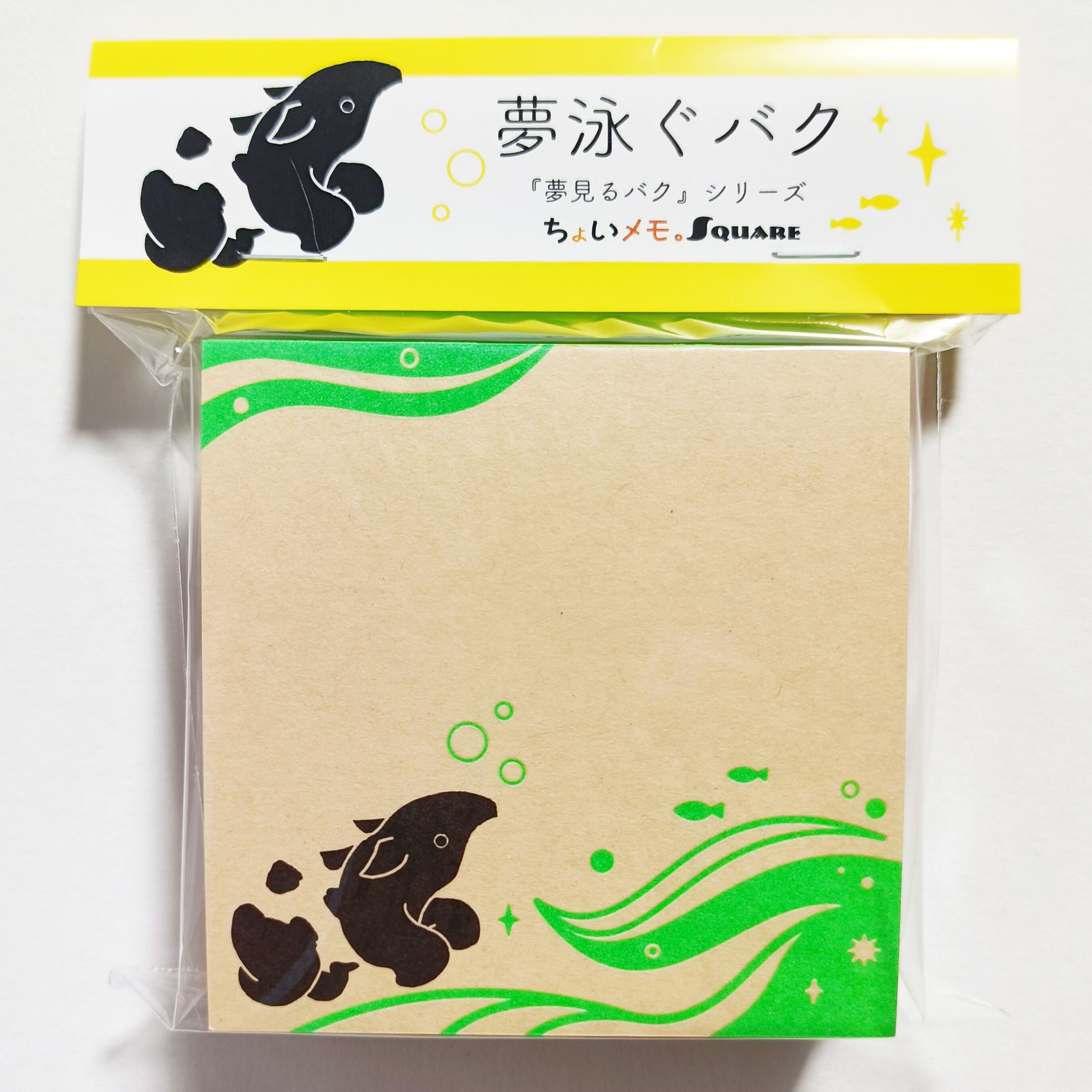 「ちょいメモ。SQUARE」夢泳ぐバク・グリーン・オリンパス(紙色:ベージュ)