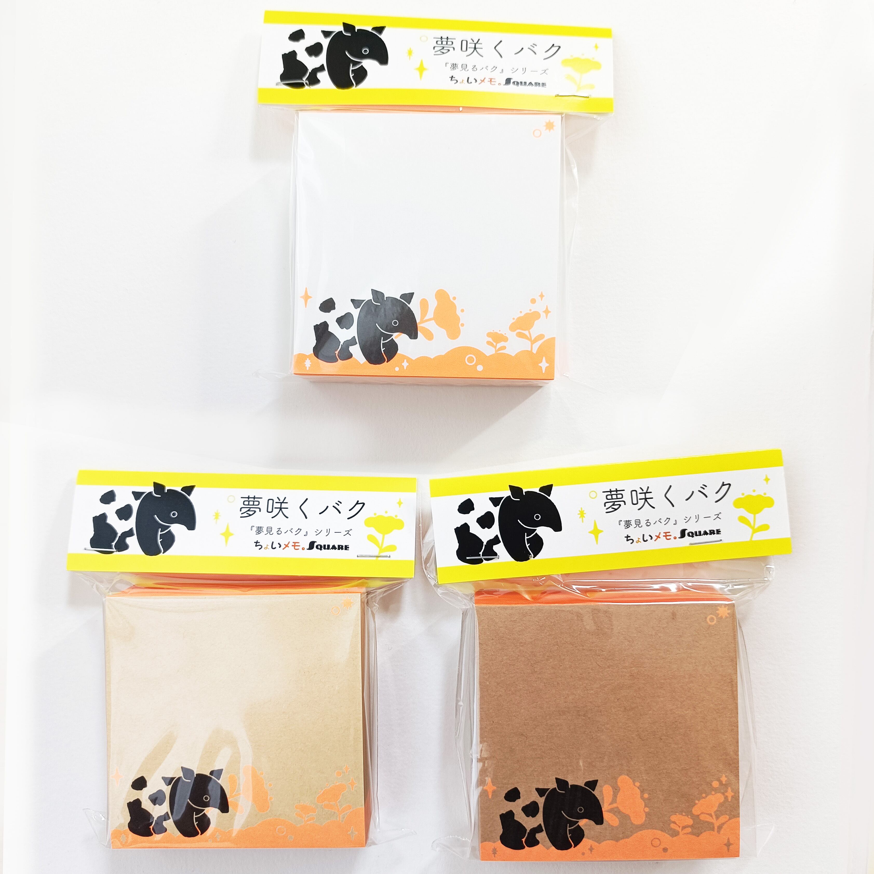「ちょいメモ。SQUARE」夢咲くバク・オレンジ・オリンパス(紙色:ベージュ)
