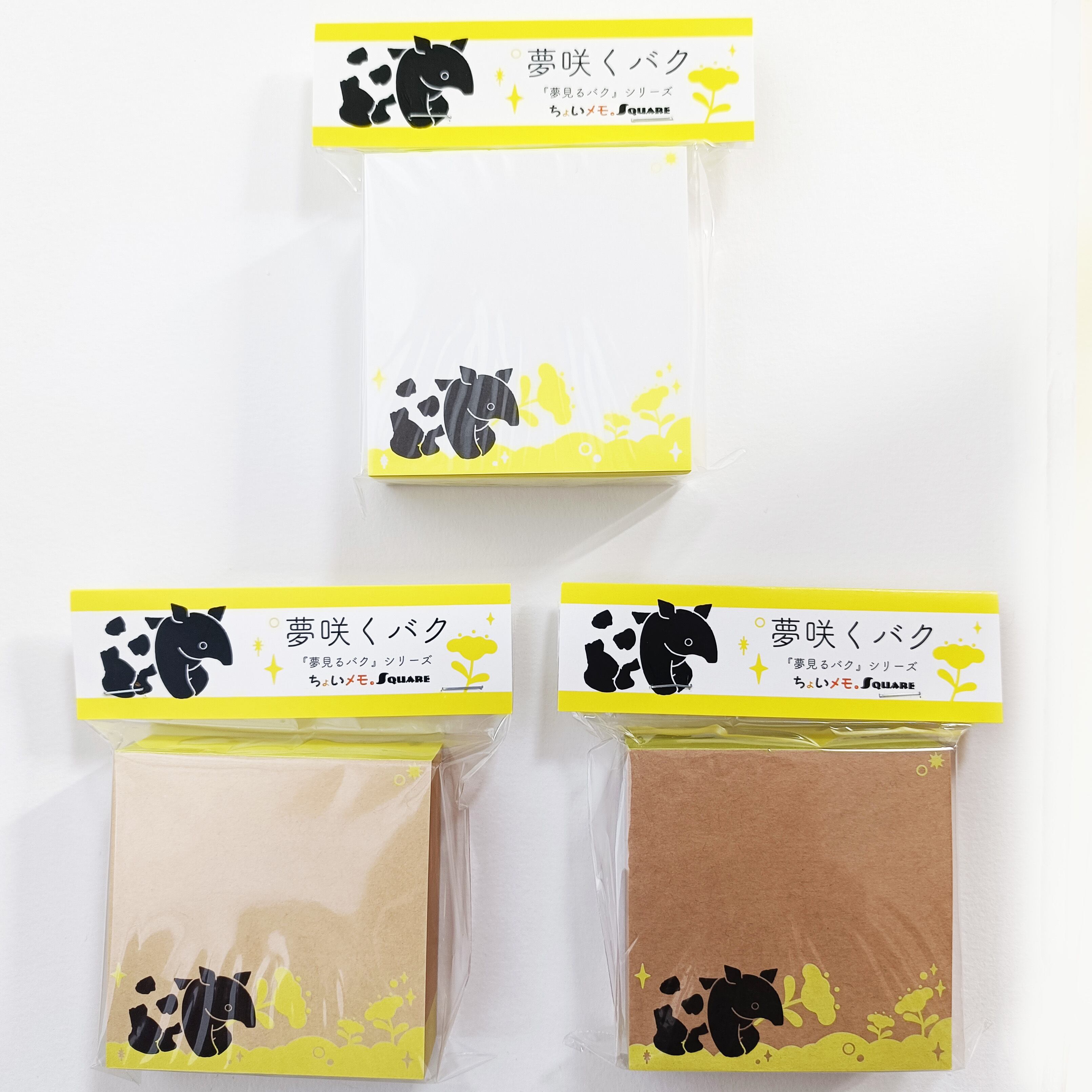 「ちょいメモ。SQUARE」夢咲くバク・イエロー・オリンパス(紙色:ベージュ)