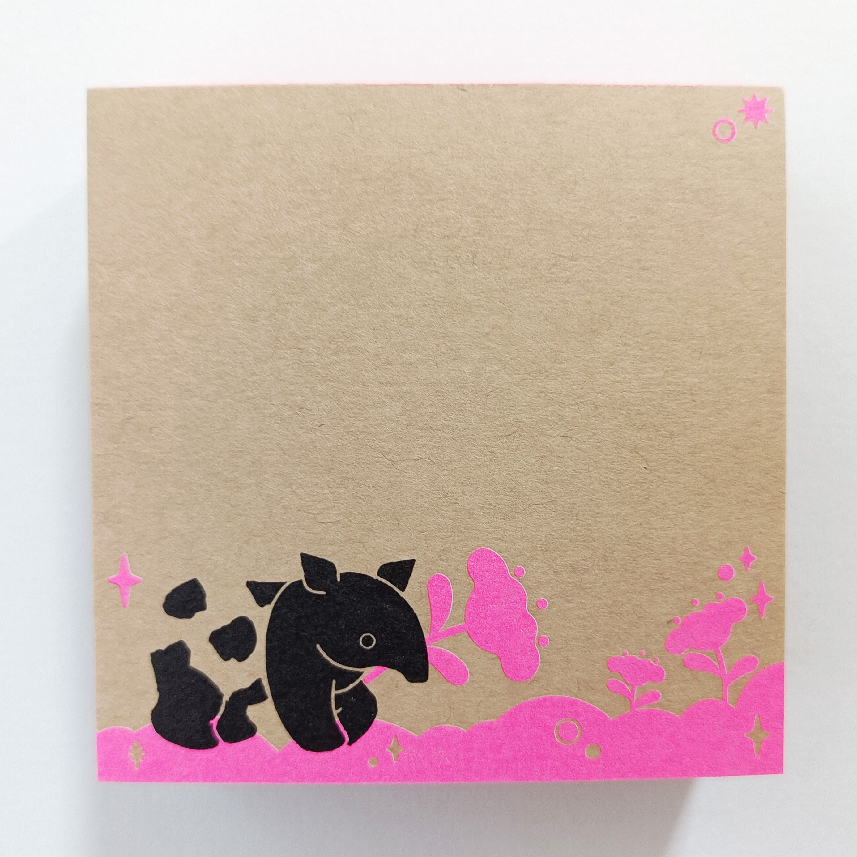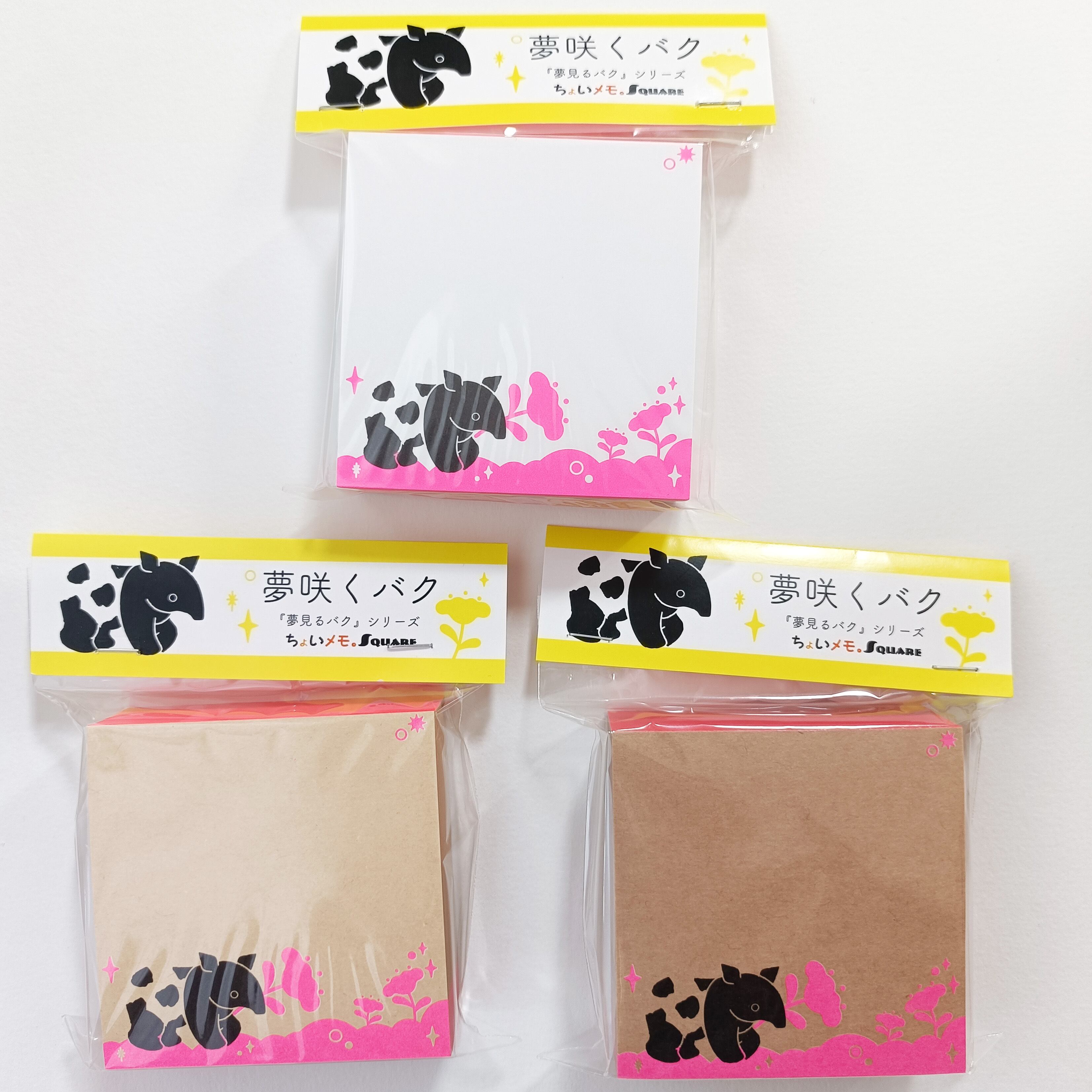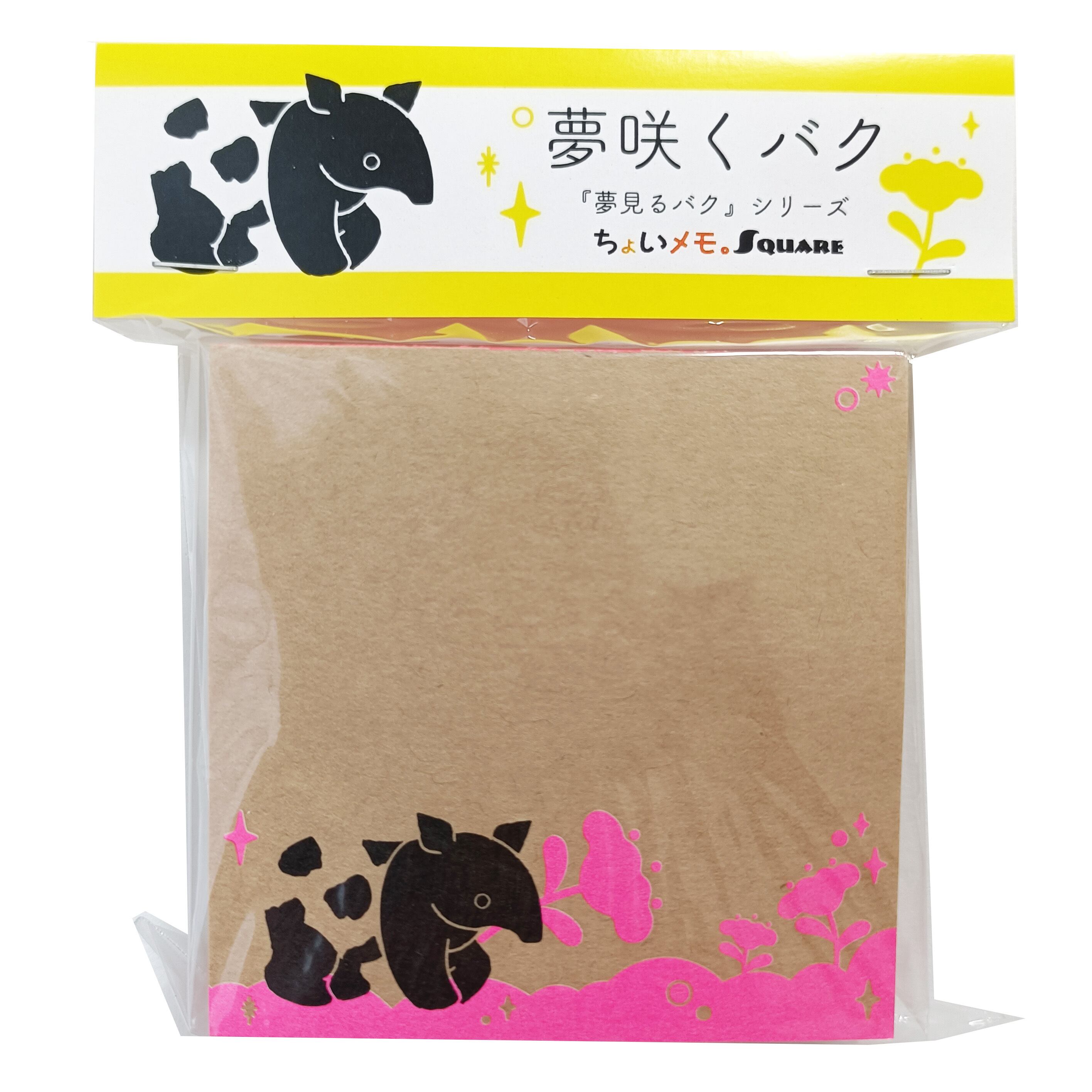 「ちょいメモ。SQUARE」夢咲くバク・ピンク・両更クラフト(紙色:茶)