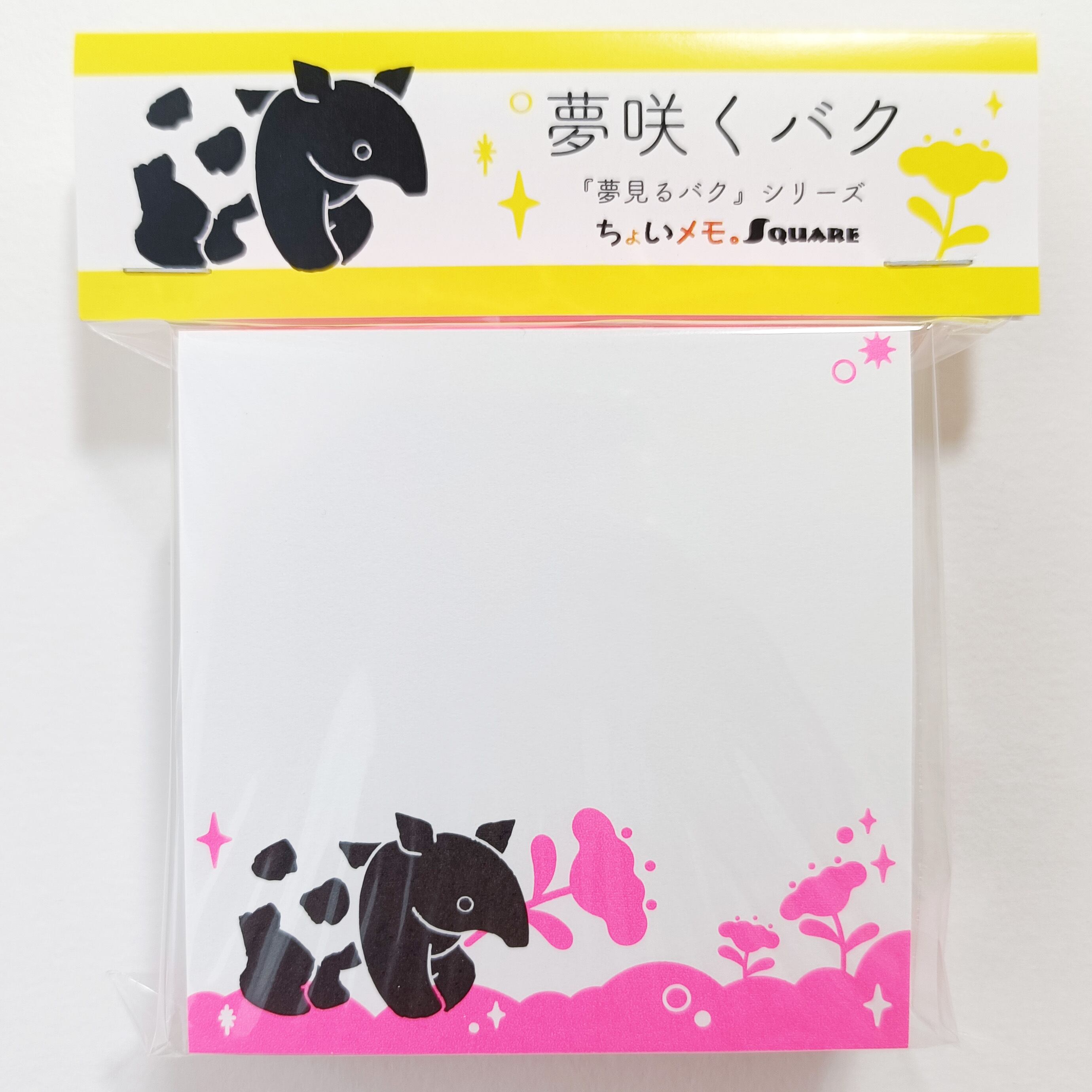 「ちょいメモ。SQUARE」夢咲くバク・ピンク・上質紙(紙色:白)